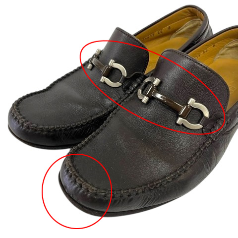 サルヴァトーレフェラガモ Salvatore Ferragamo ローファー ガンチーニ ビットローファー 6 24.6cm ダークブラウン シルバー レディース