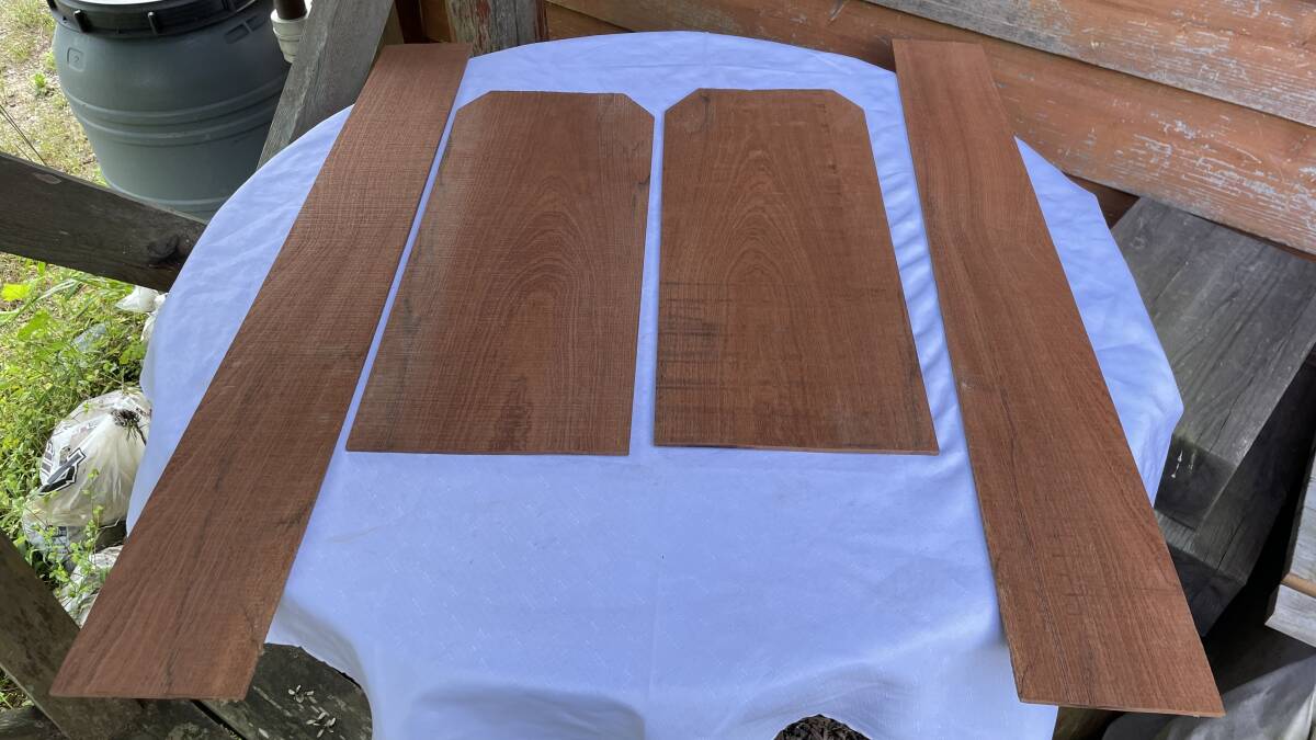 商品説明 | サペリマホガニーのアコースティックギターサイズのサイドバックセット材です。 サペリマホガニーはアフリカ産のセンダン科で、マホガニーより硬質で響きの良いトーンウッドです。 バック材:幅157mm~228mmX長さ549mm~550mmX厚み5mm~6mm サイド材:幅111mm~130mmX長さ870mm~871mmX厚み5mm~6mm バック材に反り、黒スジ、サイド材に黒スジが有ります。 | |