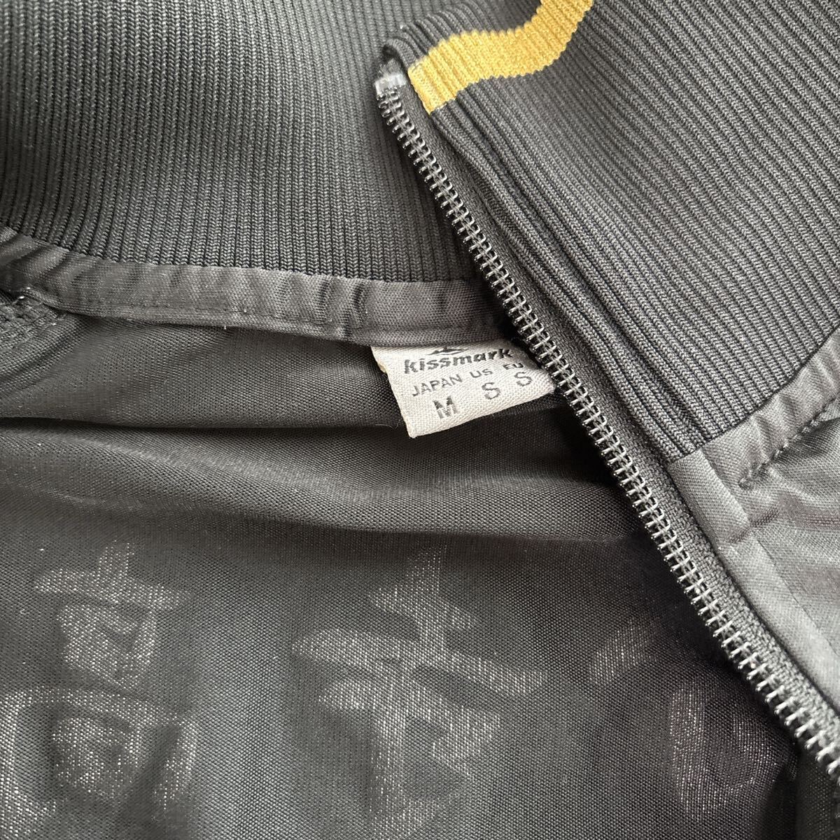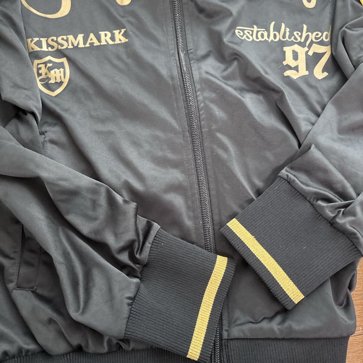 KISSMARKのブラックジャージ、Mサイズ、プリントロゴデザイン。
