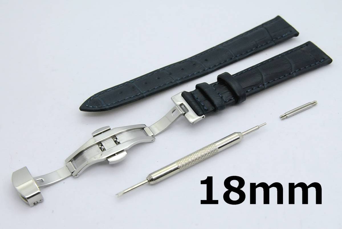 | 腕時計ベルト ネイビー 18mm Dバックル レザー ウォッチ | |