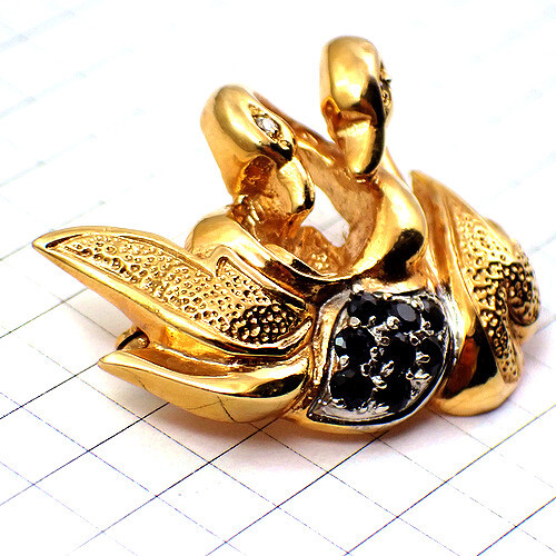"ブローチ・2羽の白鳥ラインストーン金色ゴールド"の商品説明 | |