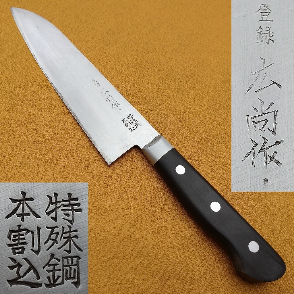 万能包丁 広尚作 特殊鋼 本割込 刃長約165㎜ 両刃 鍔付 三本鋲 調理器具 刃物 日本製 【4586】【b】