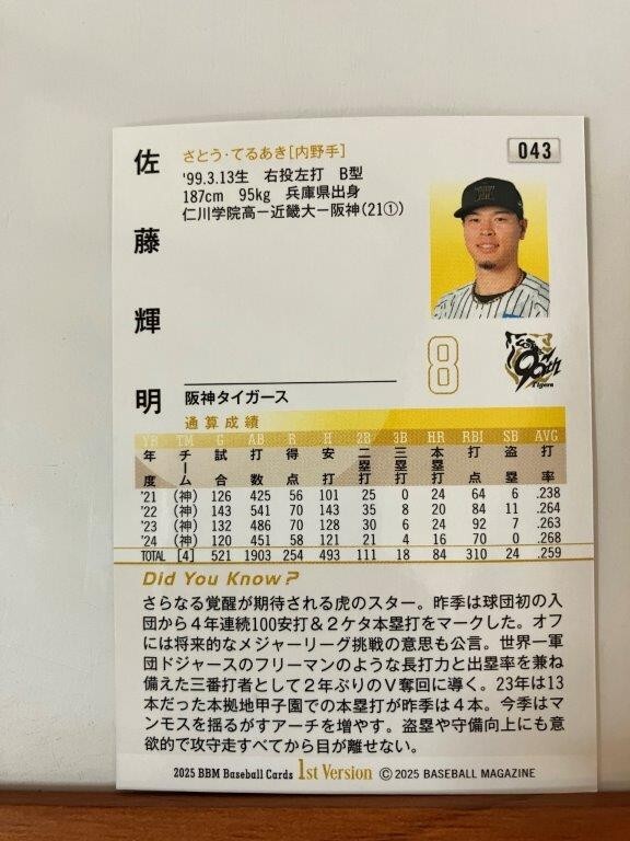 【2025 BBM 1st】043佐藤輝明(阪神タイガース)レギュラーカード※キラカード版