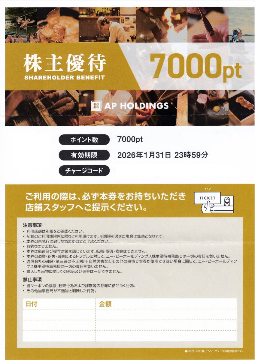 エーピーホールディングス株主優待券で合計7000円分が送料込みの価格です。