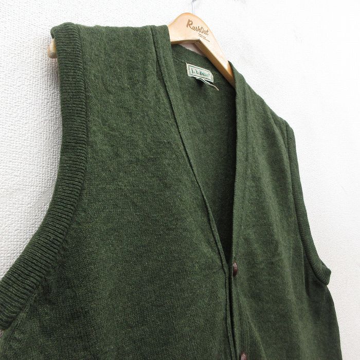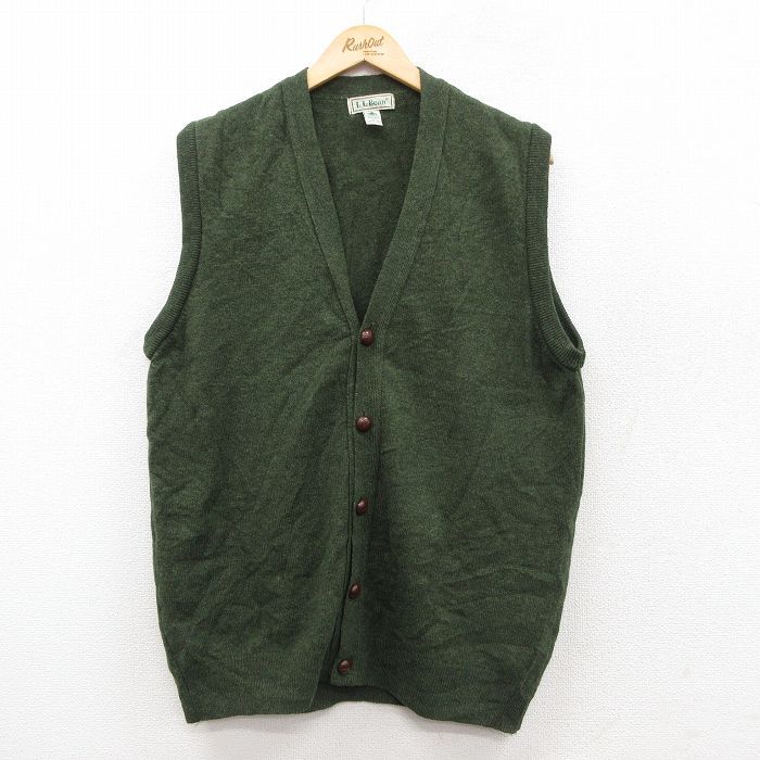 【商品名】 M★古着 エルエルビーン ニット ベスト メンズ 90年代 90s 無地 ラムウール アイルランド製 濃緑