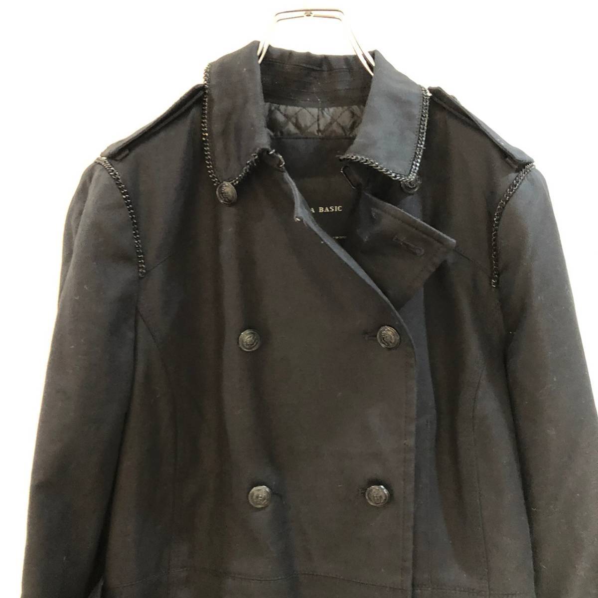 商品: ZARA BASIC/ザラ ベーシック 長袖トレンチコート ブラック 黒 レディース L