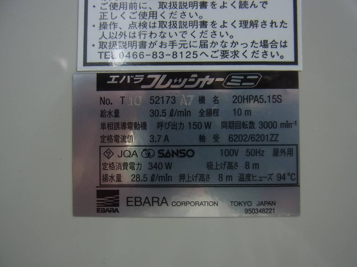 エバラ 浅井戸用給水ポンプ 20HPA5.15S 100V