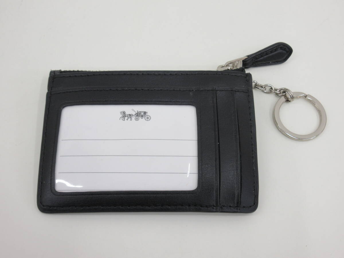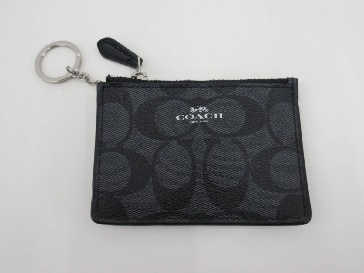 COACH コーチ F16107 コインケース パスケース キーリング付き 3WAY シグネチャー PVC ブラック 美品