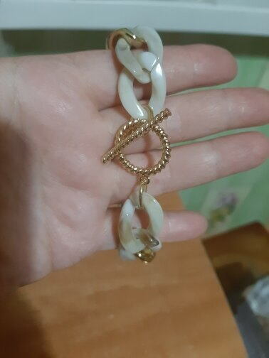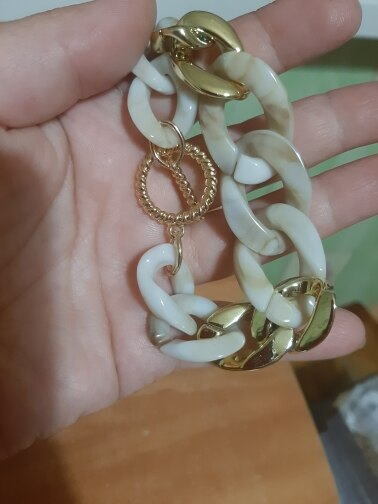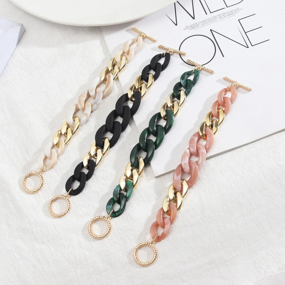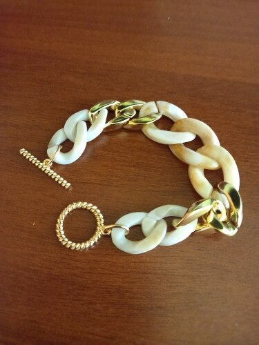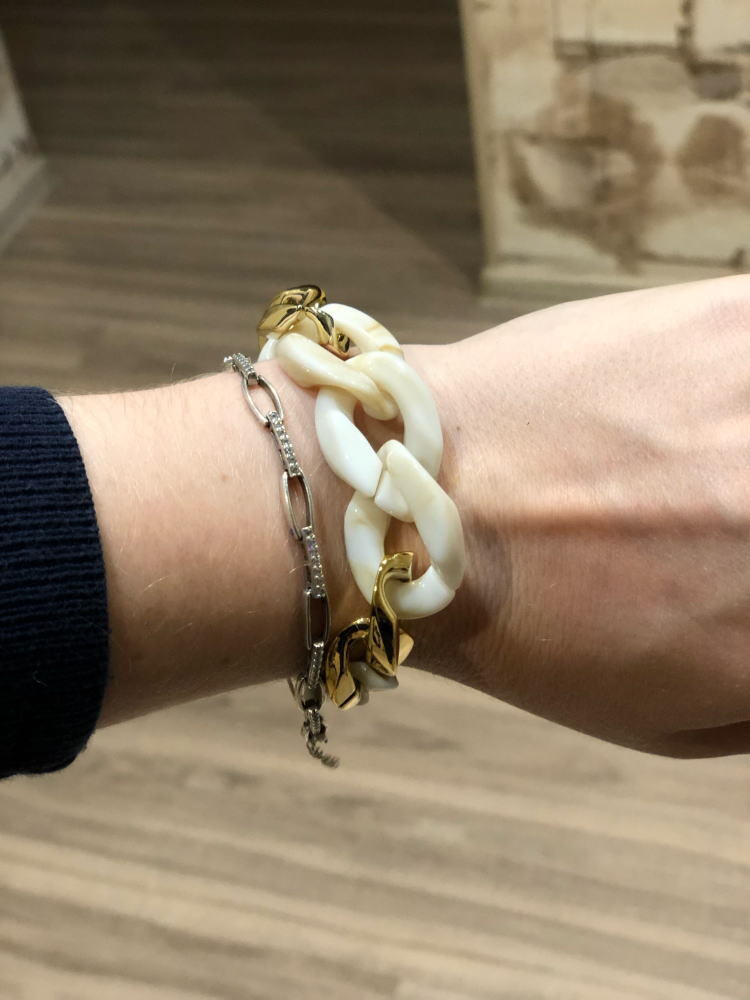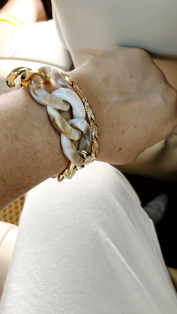 周りと差がつく!チョイ盛りアクリルチェーンブレス■ビンテージ感ベージュ&ゴールド