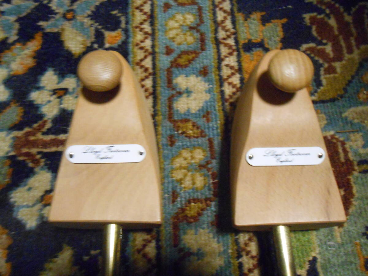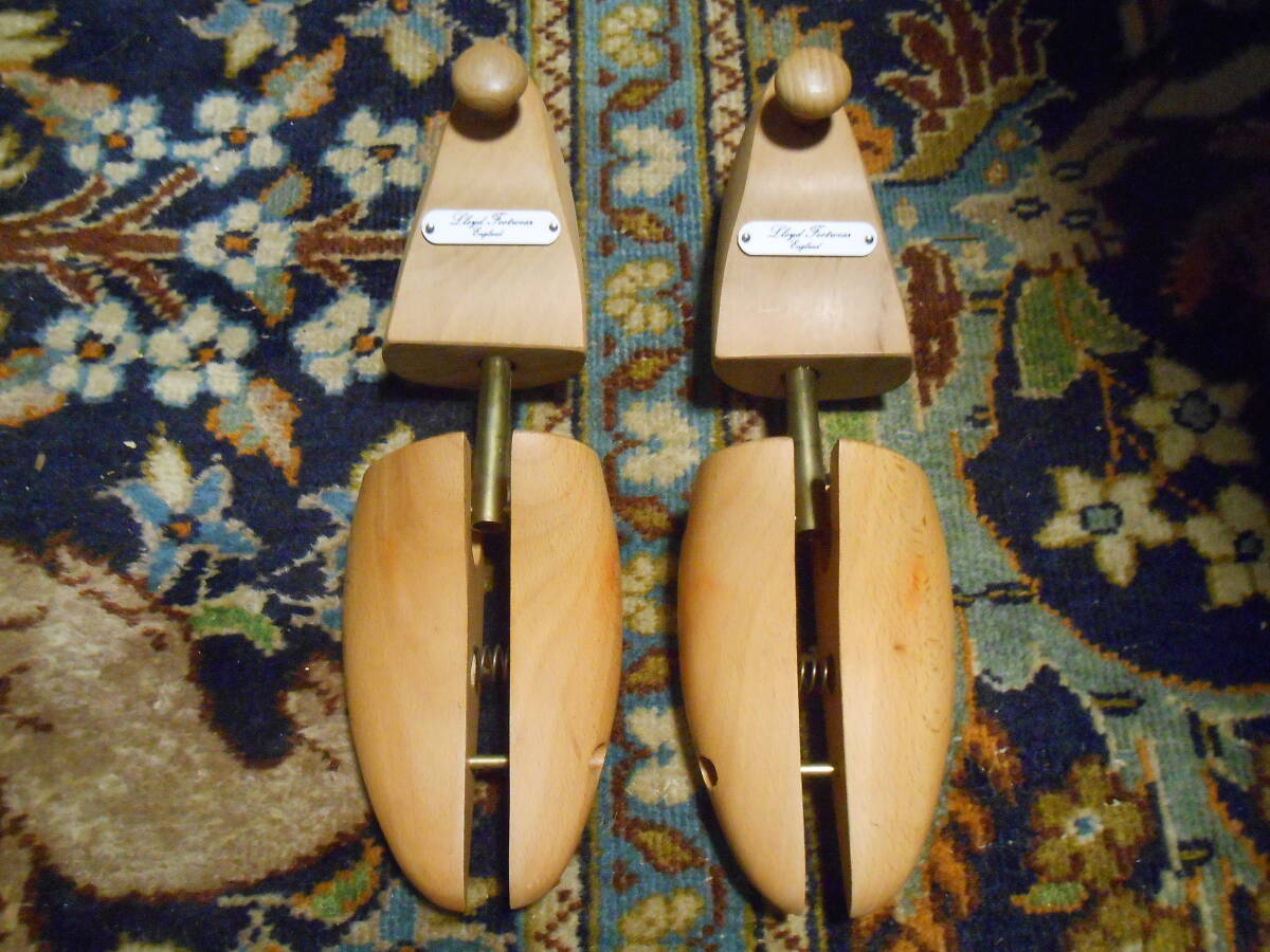 高品質&良心的な品揃えで有名なLloyd Footwear ロイドフットウエアのシューツリー。重量感のある高級ハードウッド(木)製です。気になる程のきずや汚れなどはなく、美品と言えると思います。サイズはUKサイズのSだと思います。実寸で、全長:約28.5cm(=2.5cn程縮小可能)、最大幅:約9.3cm(==1.3ccn程縮小可能)です。恐らくUK7~8位(=25~26cm位)の靴に良く合うのではないかと思います。高級靴用に。