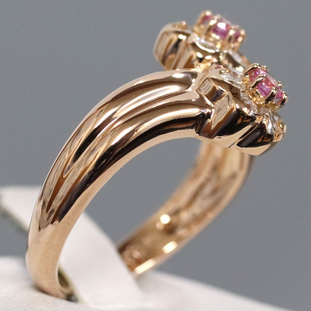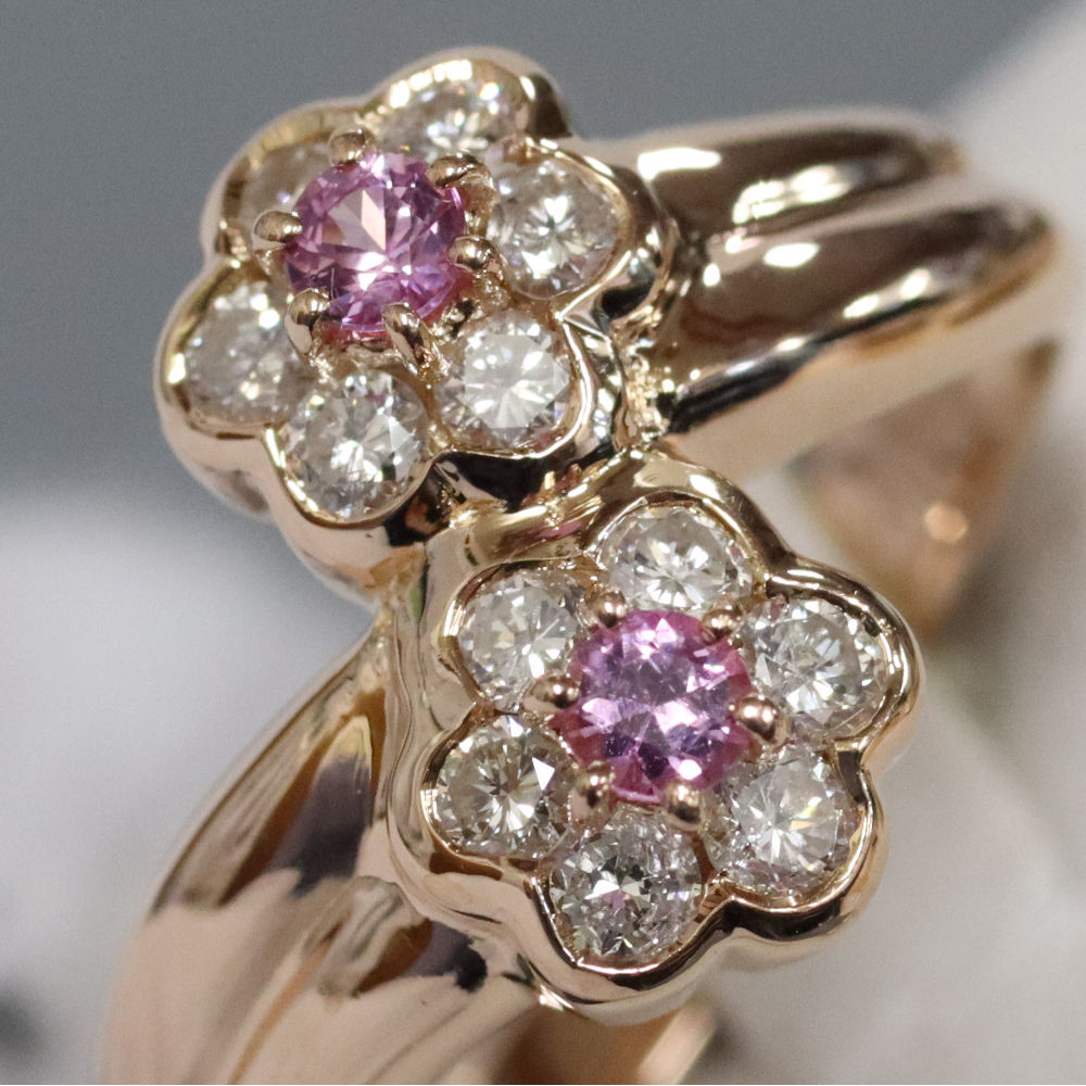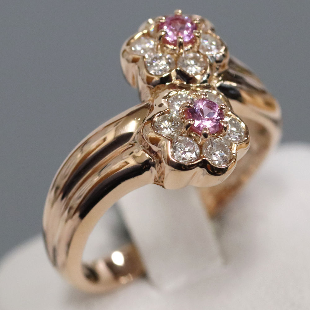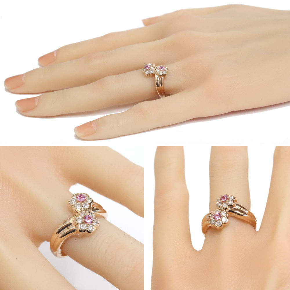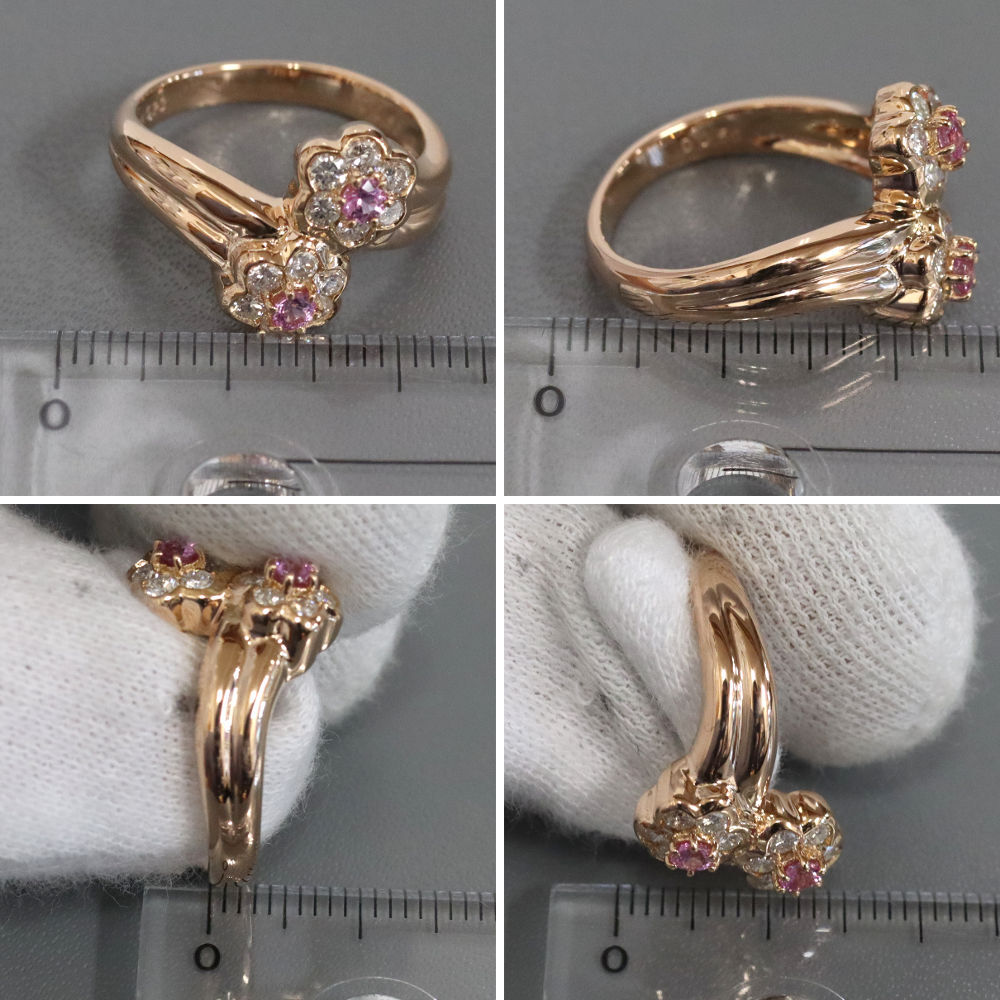 ■ K18PGピンクサファイアダイヤモンドリング フラワーモチーフ PS0.23 D0.56 5.6g #13.5 ■ | ||||||||||||||||||||||||||