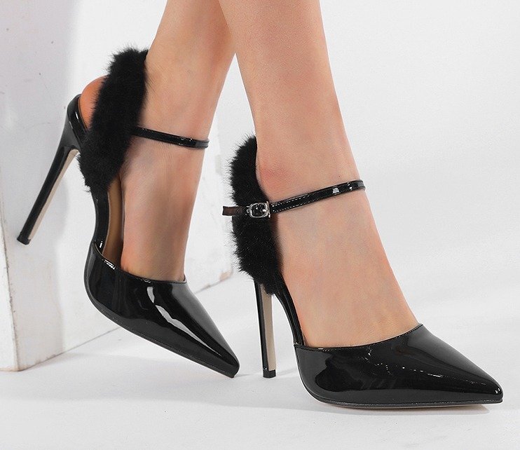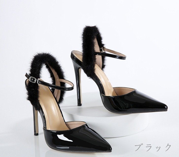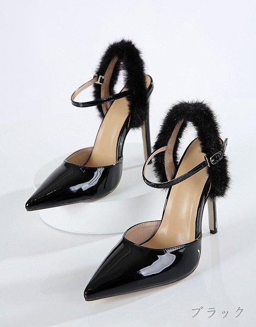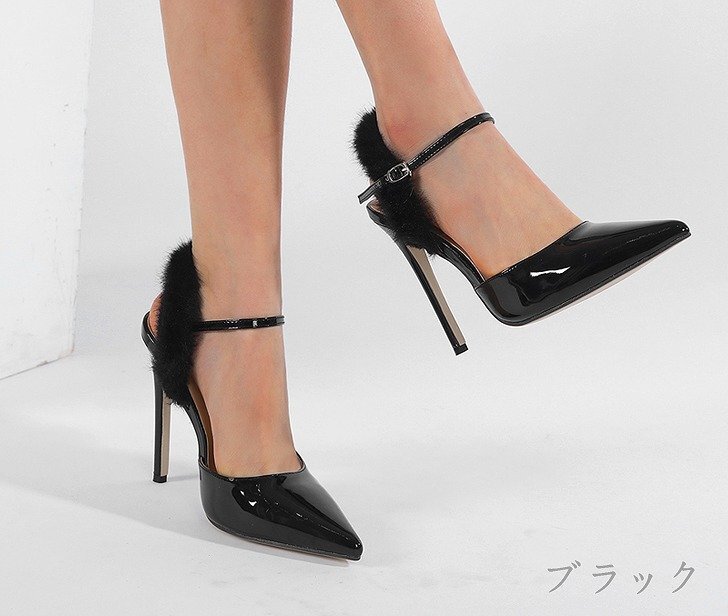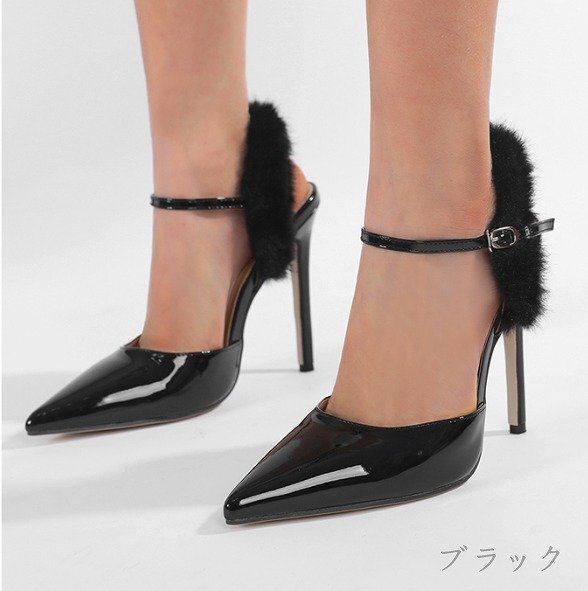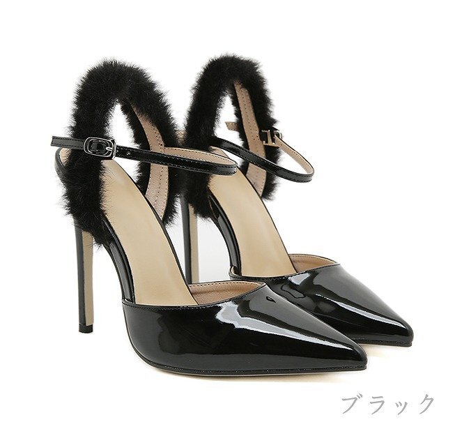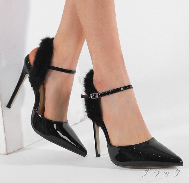 ハイヒールシューズ オフィス とんがりトゥ ピンヒール 切り替え シンプル 【39】24~24.5cm ブラック