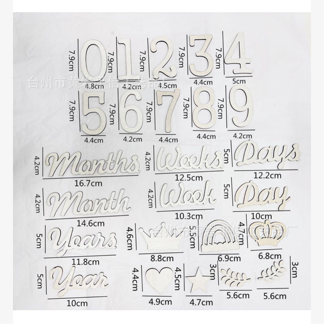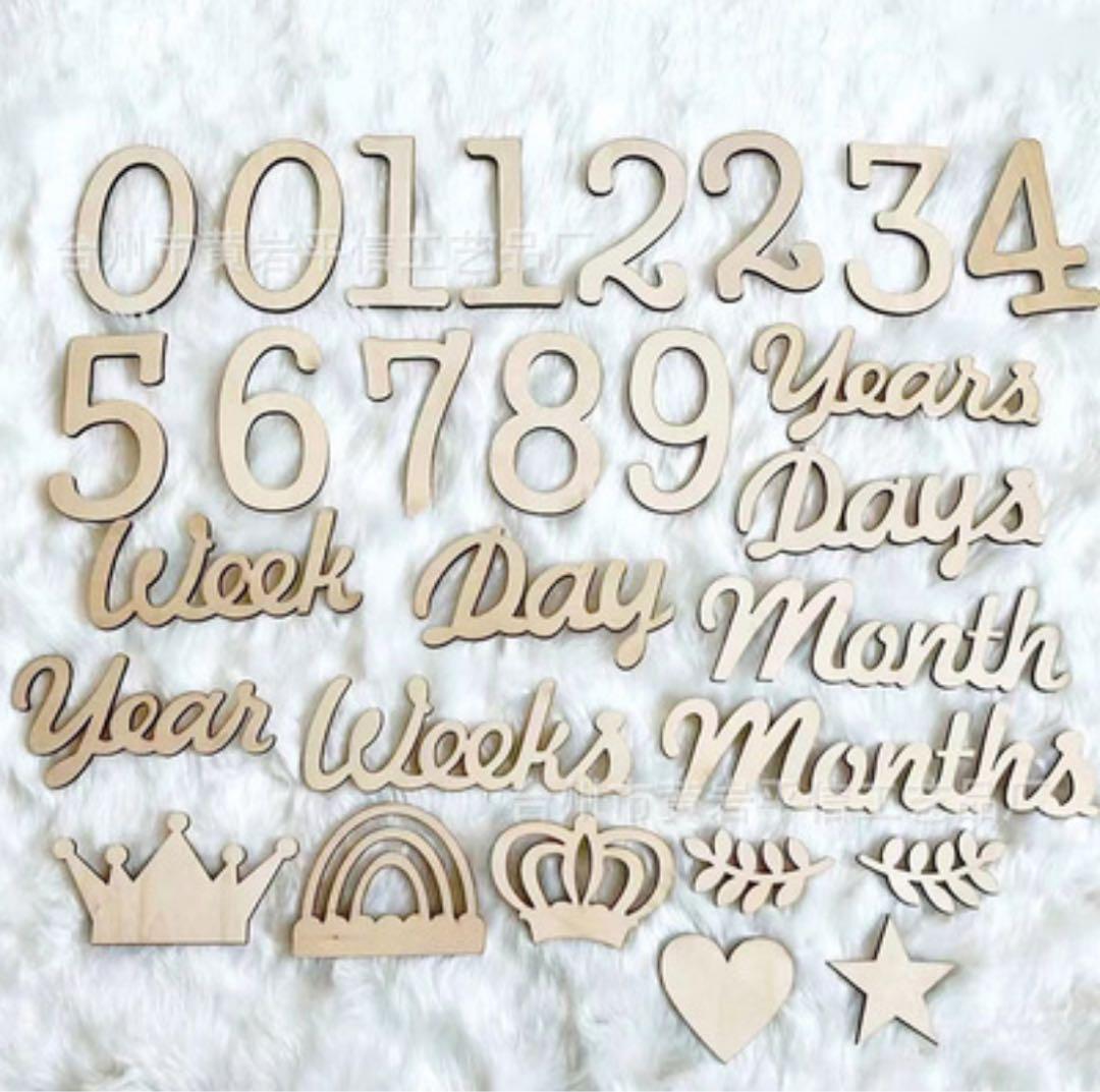 赤ちゃんの成長記録に最適な月齢フォト用アイテムです。ナチュラルなウッド素材を使用しており、どんな背景にも自然に馴染むため、おしゃれで温かみのある写真が簡単に撮影できます。数字と英字を組み合わせたデザインで、「1 month」から「12 months」までの月齢ごとに使いやすく、おうちで手軽にかわいい記念写真を残せます。