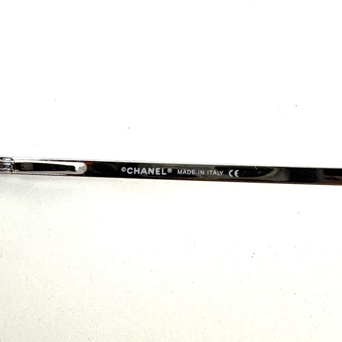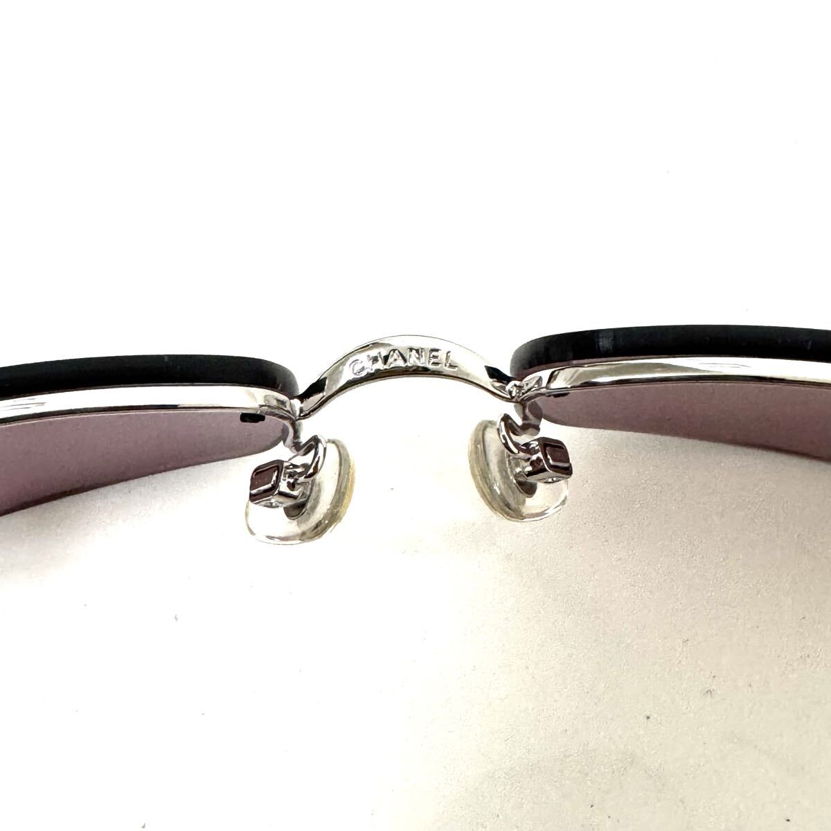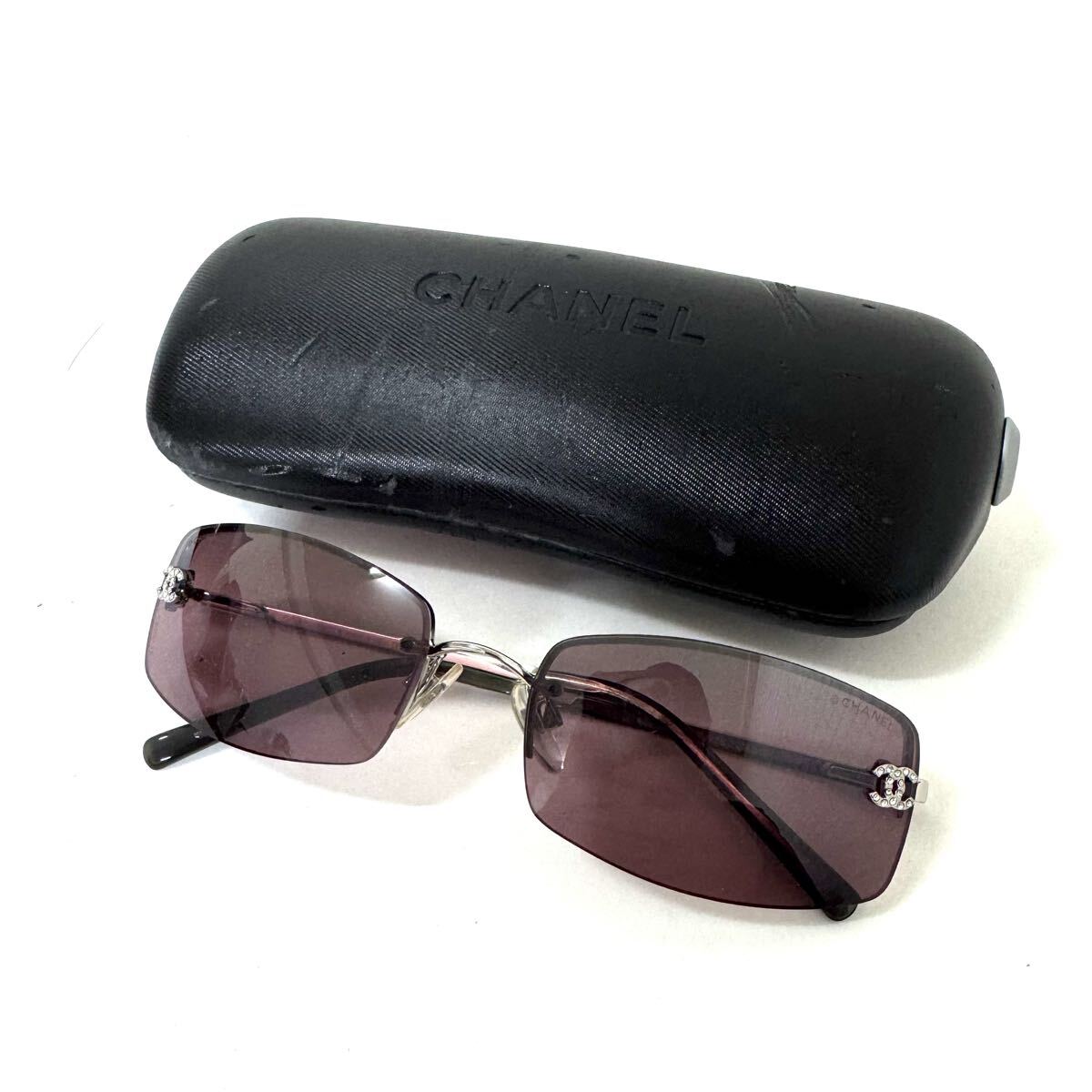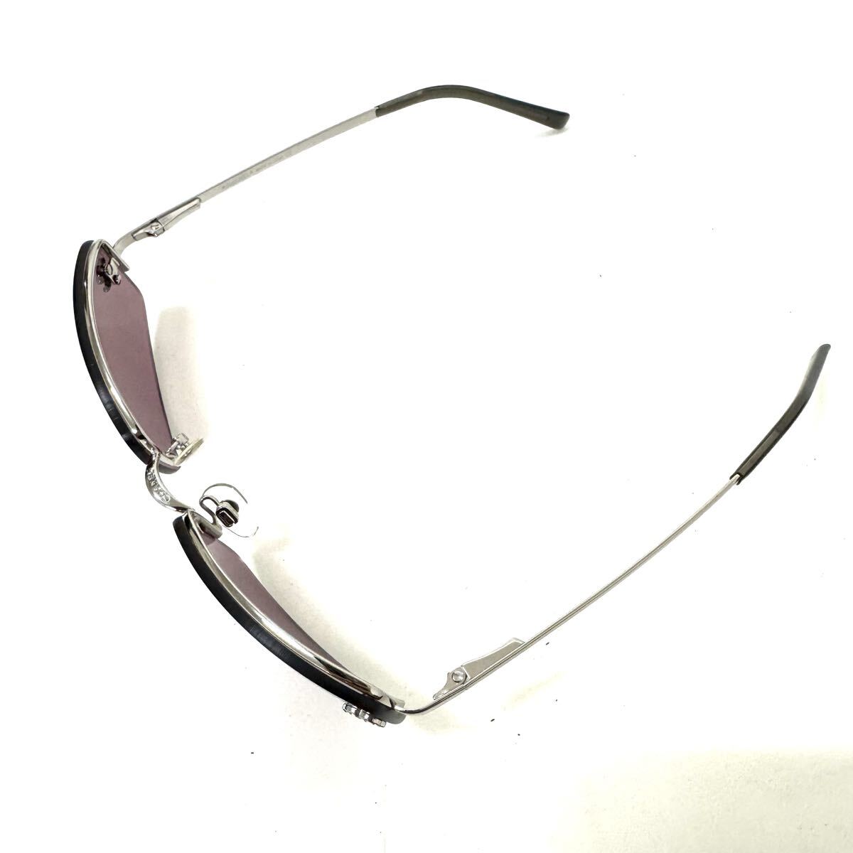 パープルレンズにフレームはシルバーのリムレスのサングラスです。ココマークにはラインストーンがついております。