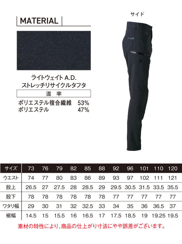 作業服 春夏 アイズフロンティア ライトウェイトA.D.ストレッチカーゴパンツ 3122 120cm 14スチールグレー