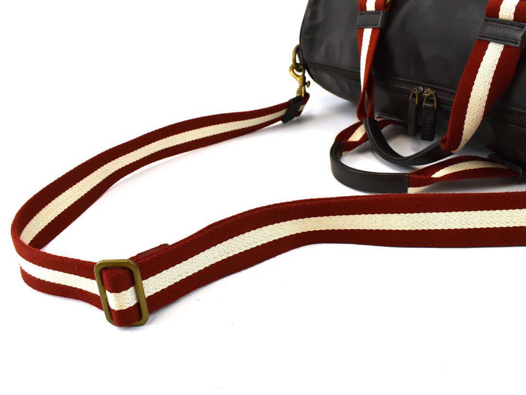 ブラウンにレッド×ホワイトのラインが映え、大容量でトラベルにも最適です。