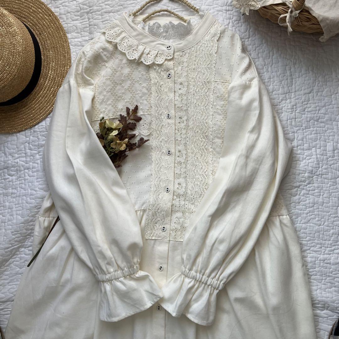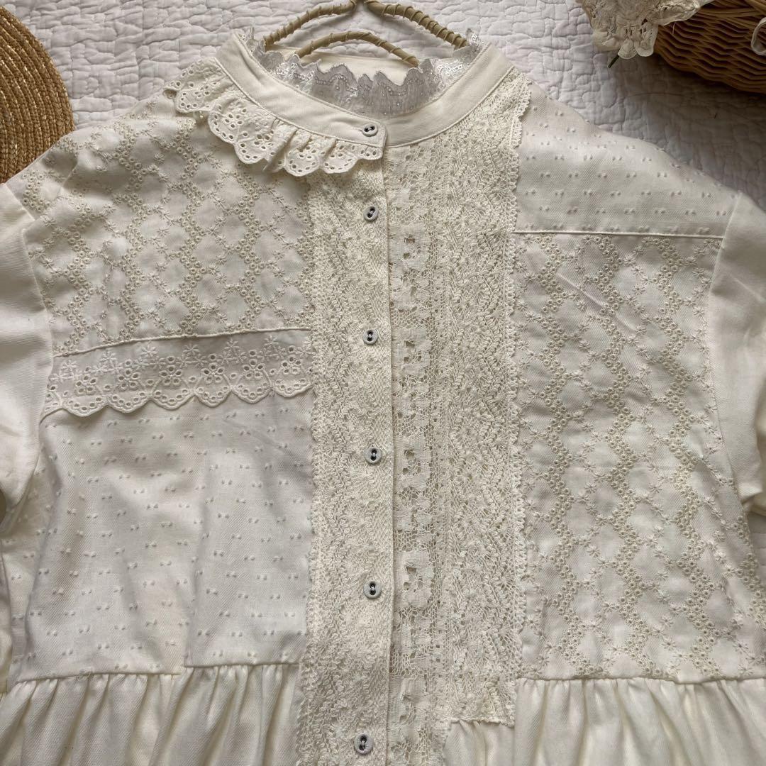 胸元にアシメトリーに施された沢山のレースがとても可愛いワンピースです。