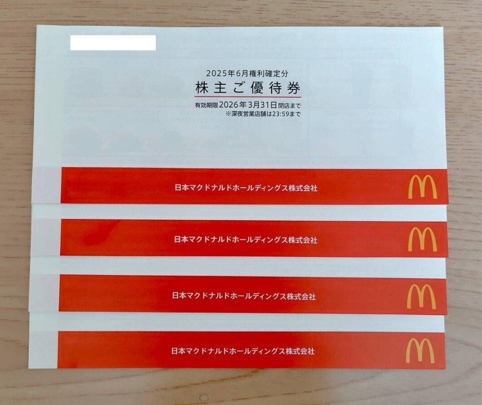 マクドナルドの株主優待券4冊です。