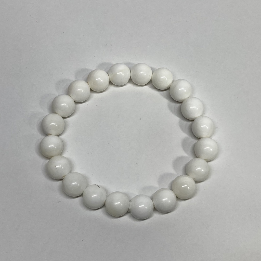 こちらは、ホワイトオニキスの10mm玉を使用したパワーストーンブレスレットです。シンプルなデザインですのでどんなコーディネートとも合わせ易いブレスレットです。サイズは内周約17cmです。(サイズ変更の場合は取引ナビにてご連絡をお願いします。) 数に限りがございますので気になる方はお早めにどうぞ。