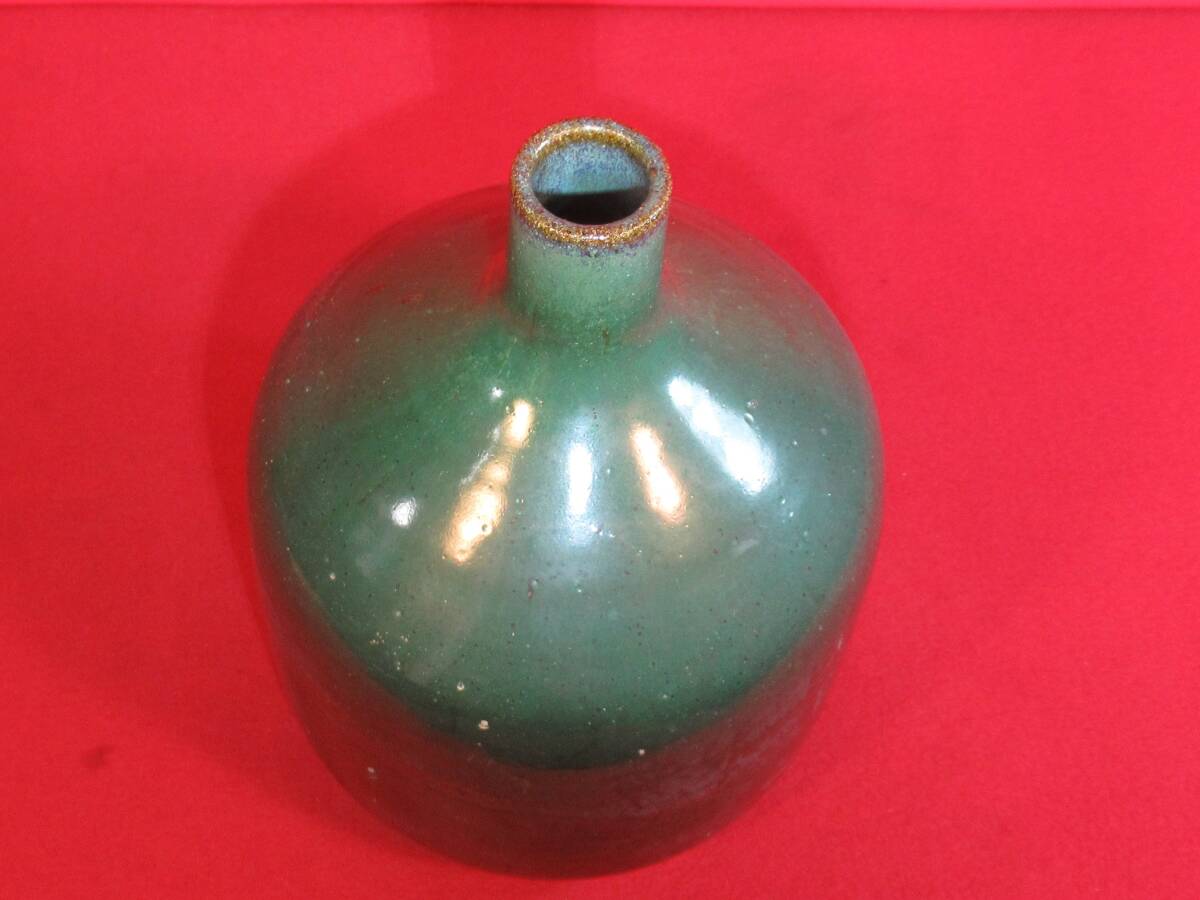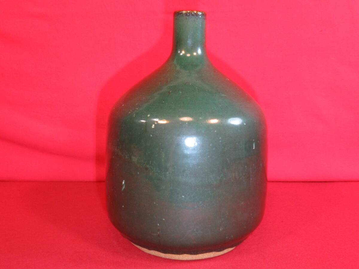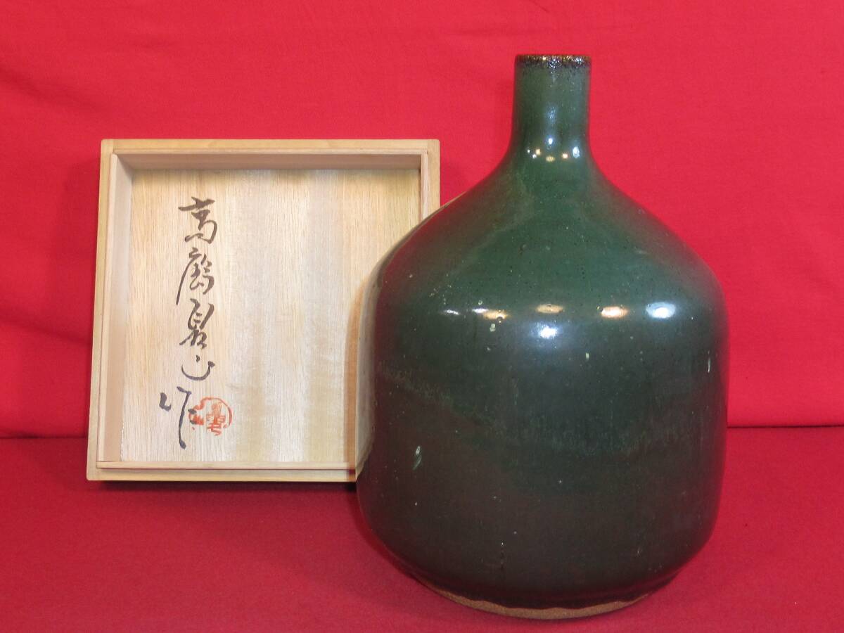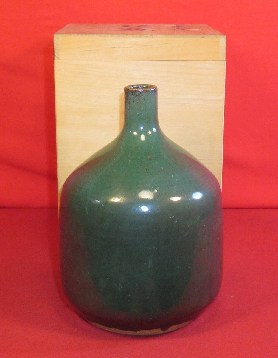 民芸復興 遠州七窯 高鶴窯元『上野焼 緑釉花瓶 共箱』高鶴夏山(高鶴元の父)