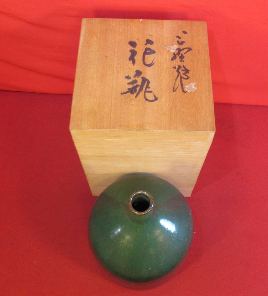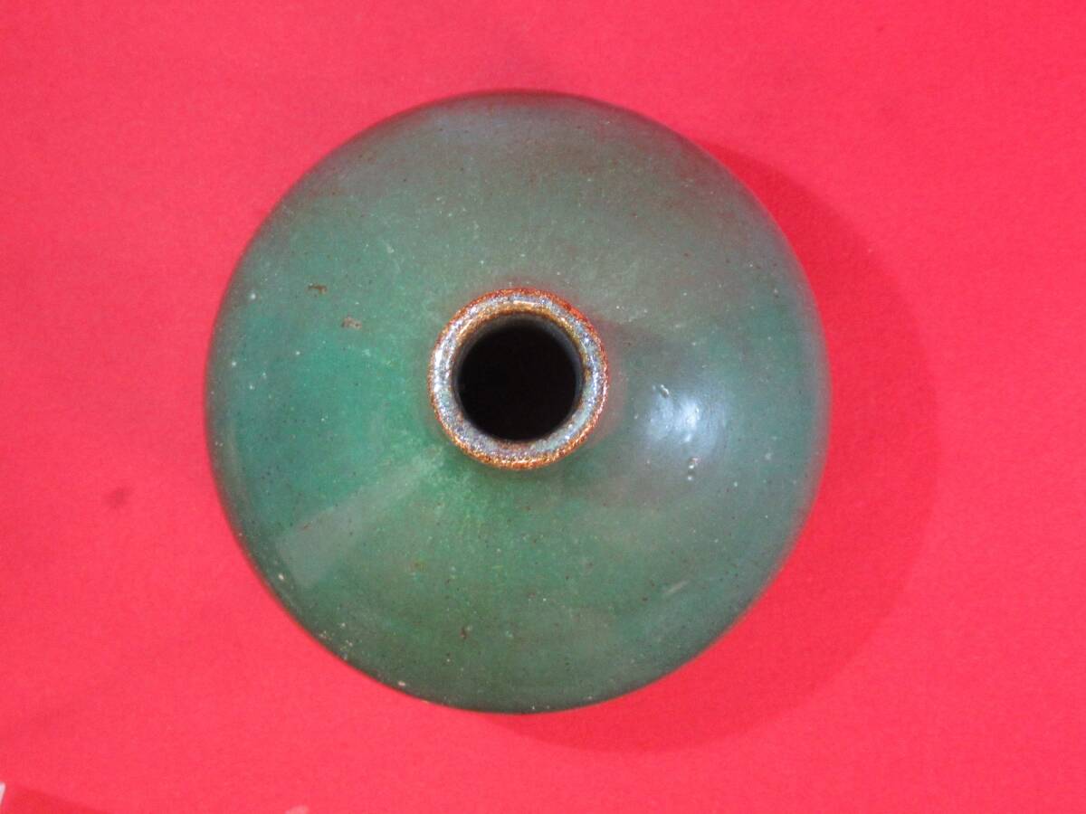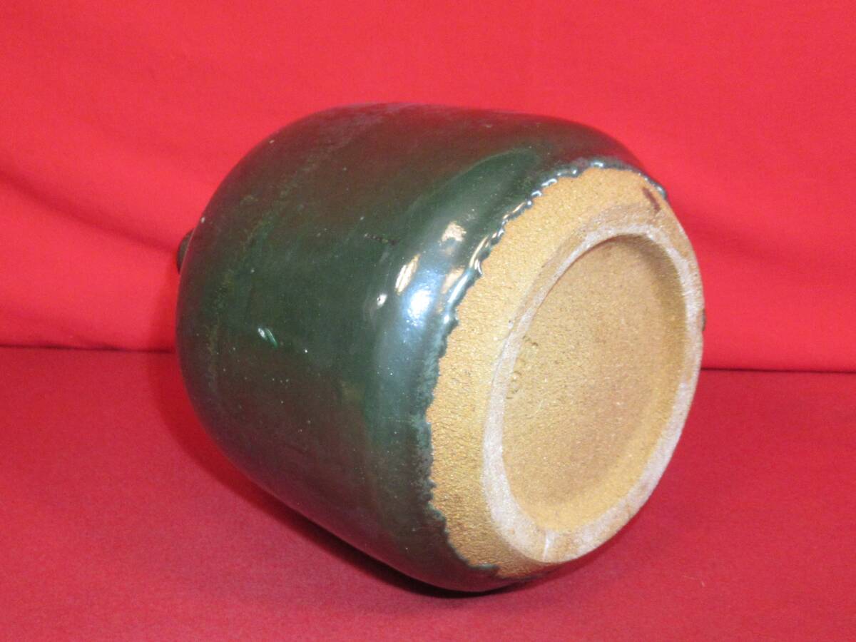 民芸復興 遠州七窯 高鶴窯元『上野焼 緑釉花瓶 共箱』高鶴夏山(高鶴元の父)