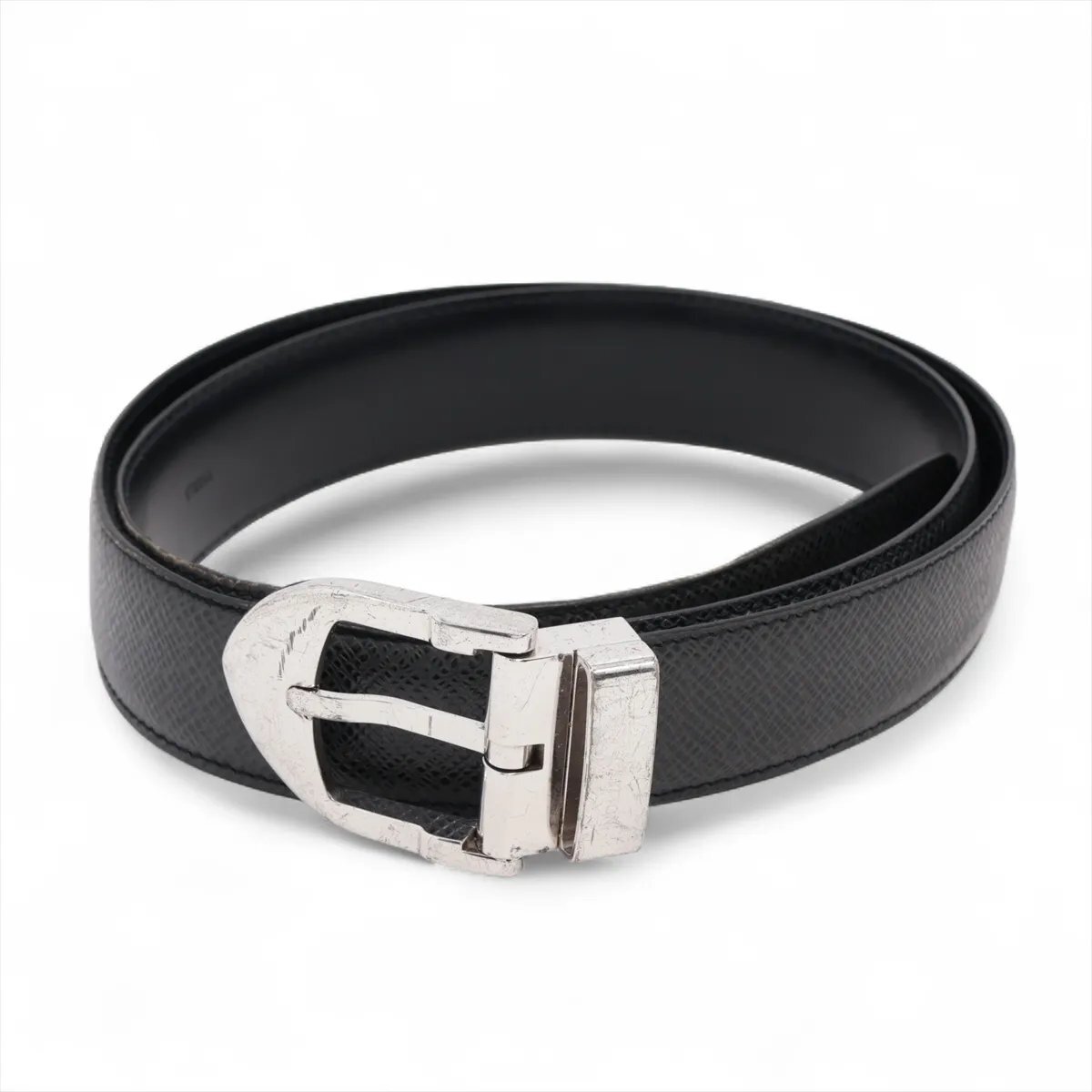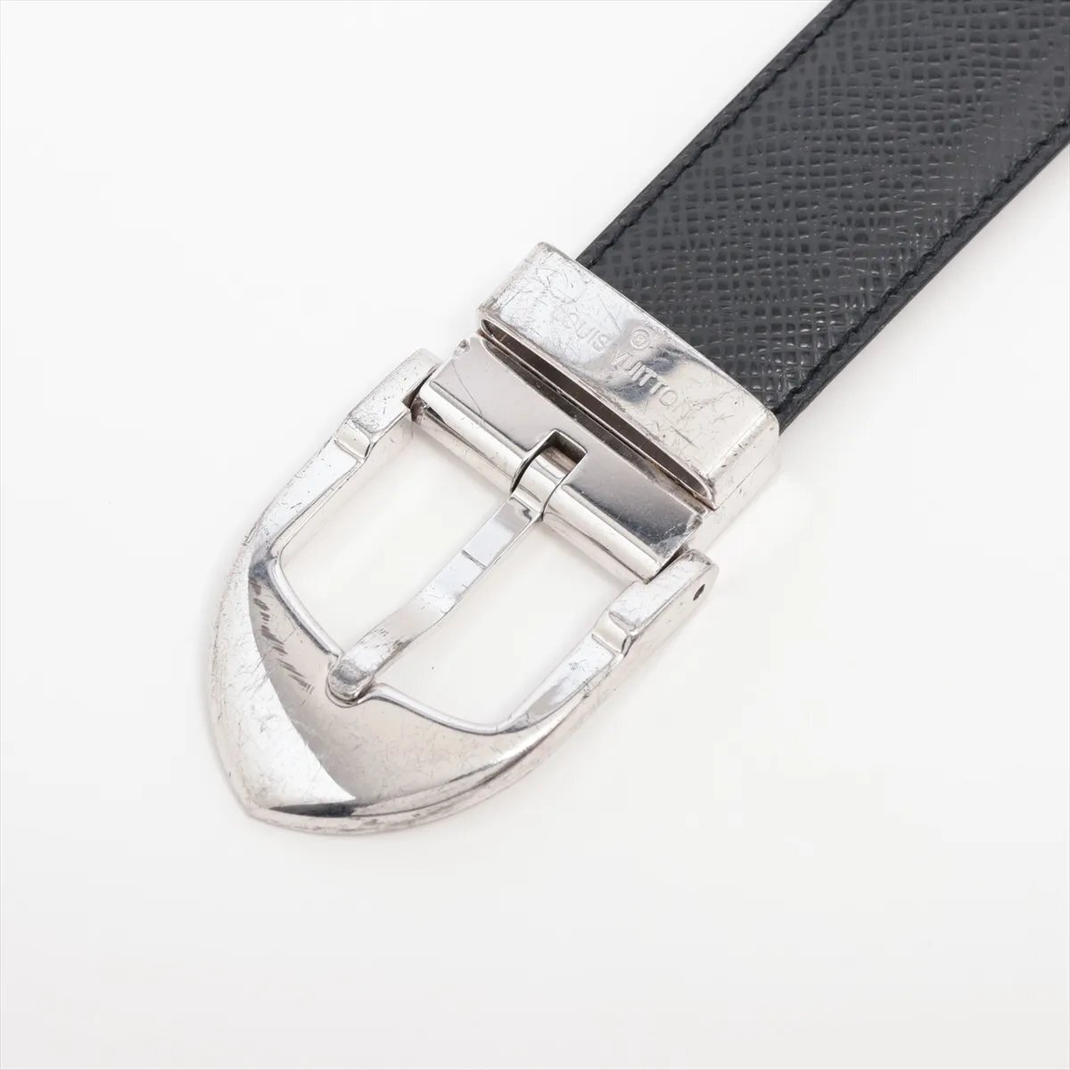 1円■美品■ルイヴィトン■サンチュール クラシック レザー ベルト M6843 本革 ブラック 黒 シルバー バックル メンズ MMM CR50-4