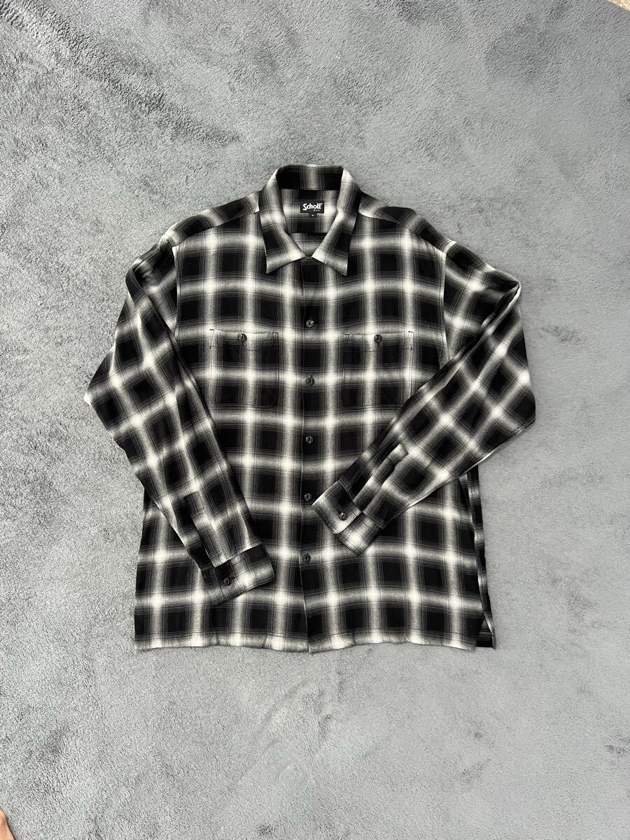 ・開襟シャツ オープンカラー ループカラー オンブレチェック ブラック ホワイト アメカジ 上野商会