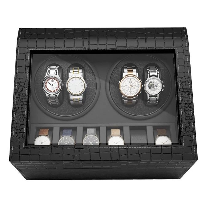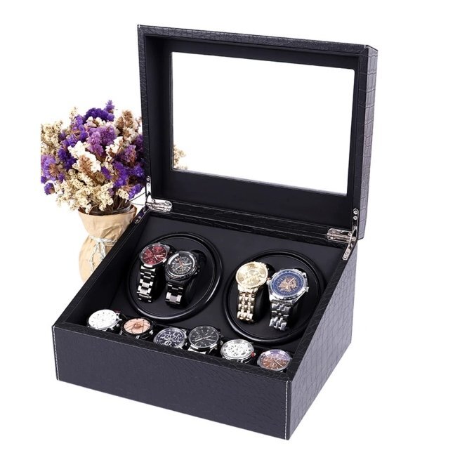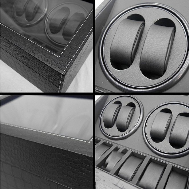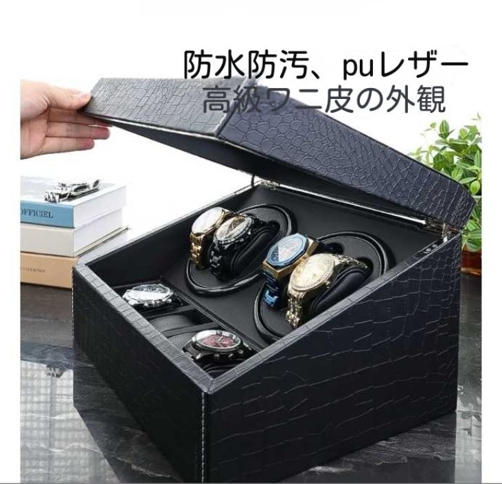ワインディングマシーン ウォッチワインダー 4本巻き 10本収納 自動巻き時計 静音 腕時計 クロコ型 PUレザー
