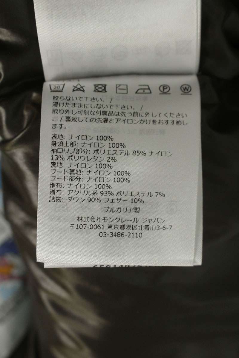 素材 | (表地) ナイロン (リブ部分) ポリエステル85% ナイロン13% ポリウレタン2% (中綿) ダウン90% フェザー10% (別布) アクリル系93% ポリエステル7% |