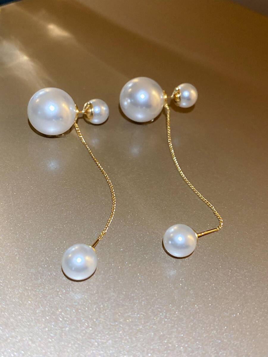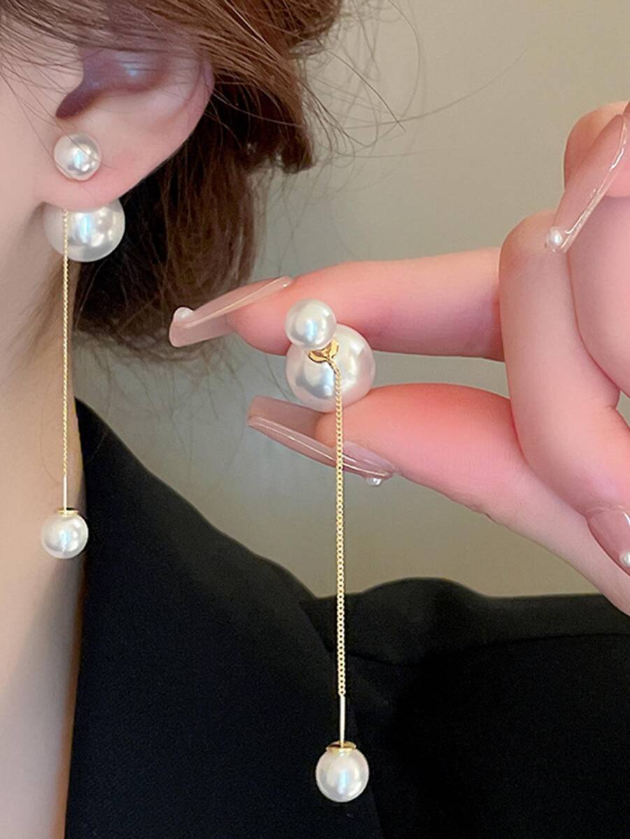 【日常に華やかさをプラス】 いつものコーデにプラスするだけで、一気に華やかになるフェイクパール装飾のイヤージャケットです。