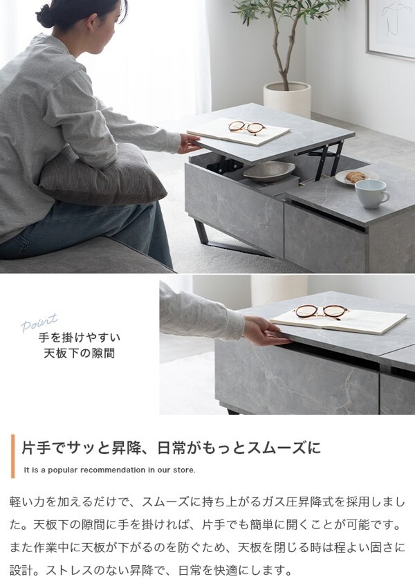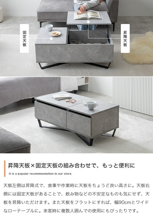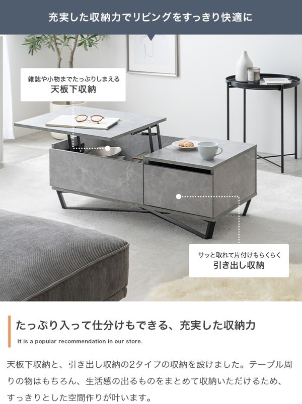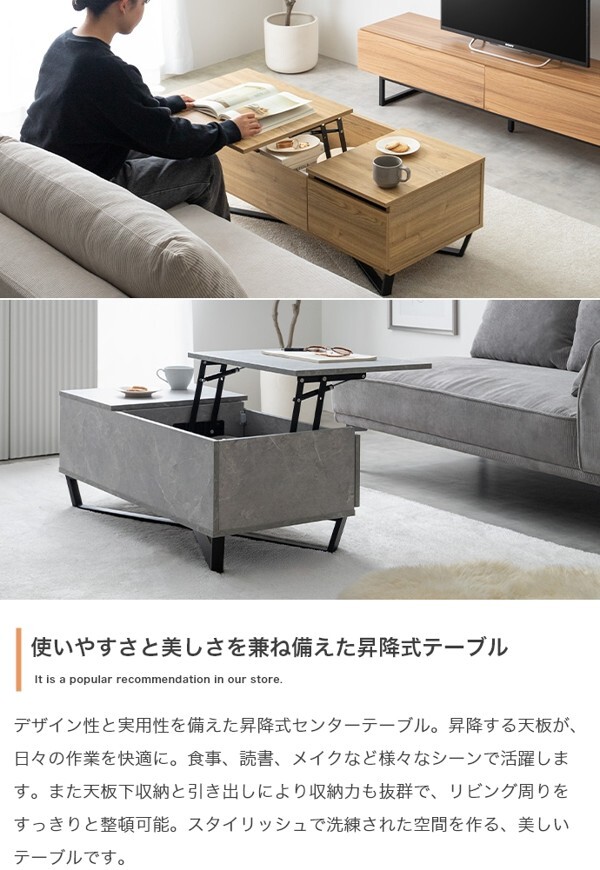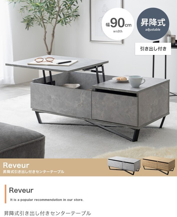 ※現在ご覧の商品ページはオークのご購入ページとなります。 ヤフオクの仕様上単一ページに複数バリエーションを掲載することができませんので、他バリエーションが希望の場合は別ページでご購入お願い致します。 これ一台で暮らしのあらゆるシーンに対応する『Reveur(レヴール)』昇降式引き出し付きセンターテーブル。 天板がスッと引き寄せられ、食事やメイク、読書やちょっとした作業も快適に行っていただけます。 天板下収納と引き出しにはリビングの小物をすっきりまとめられるため、いつも整った空間に。 直線的なフォルムとブラックスチール脚が、上質な洗練された空間作りを叶えます。 配達業者を指定いただくことはできません。 沖縄・離島に関しましては、別途配送料が必要となります。 北海道への配送も別途配送料が必要になる場合がございます。 ※別途送料が発生する場合は後ほどご連絡させていただきます。 タイミングによっては在庫切れの場合があります。
