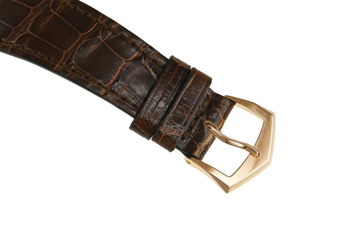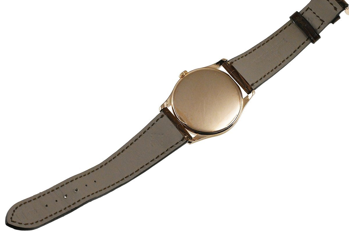 【コメント】 パテック フィリップの象徴ともいえるカラトラバ・コレクション。2004年に登場したカラトラバ「Ref.5196」K18ローズゴールドモデルです。初代カラトラバ Ref.96(クンロク)をオマージュした人気の高いモデルです。シンプルで洗練された流行に左右されない完璧なデザインが魅力です。僅かな擦れはありますが目立つ様なキズはありません。革ベルトは巻き癖や尾錠の留め痕はありますが目立つ汚れや傷みはありません。2014年12月に国内正規店にて購入品で、2025年1月に当店契約の修理サービスにてオーバーホールをしています。現在精度は平置きで日差+4秒程です。