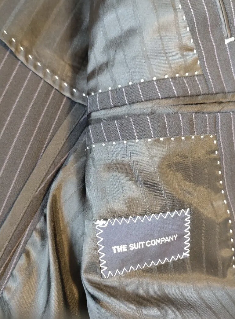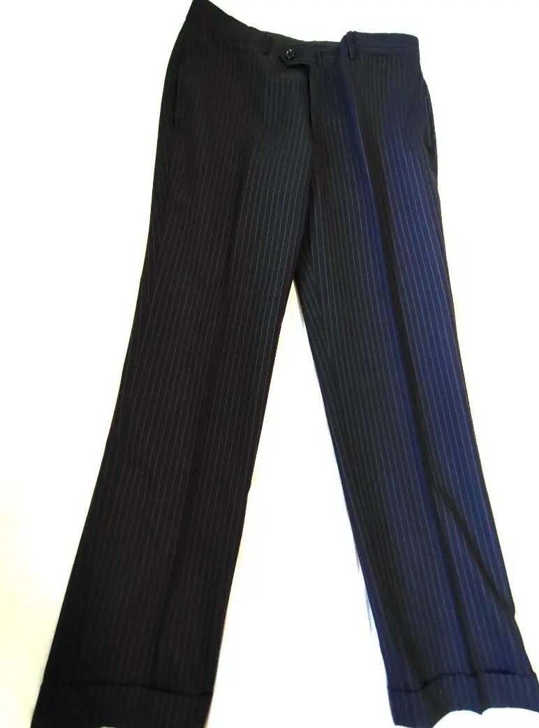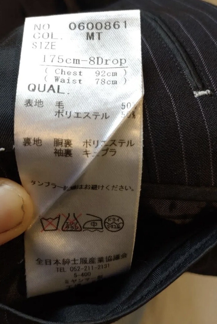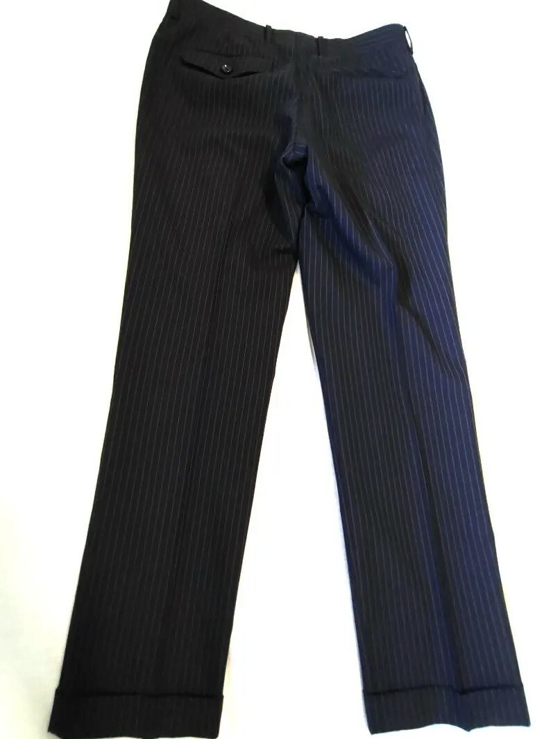 ご覧いただきありがとうございます。ビジネス、フォーマル幅広いシーンで着用できる黒に近い濃いめのネイビーストライプ柄