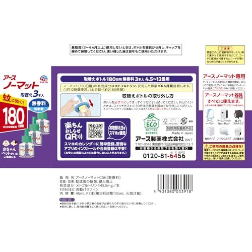 アースノーマット 詰め替え 蚊取り 蚊除け 無香 180日×3 屋内 屋外 蚊 対策 駆除 虫除け 防除用医薬部外品