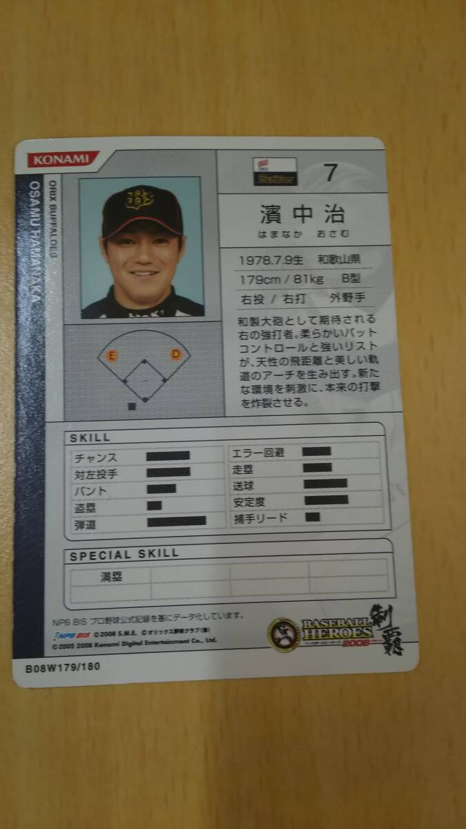 【丸-2241】(HG)コナミ/ベースボールヒーローズ2008/ オリックスバッファローズ/7濱中治/野球トレーディングカード(yu) |