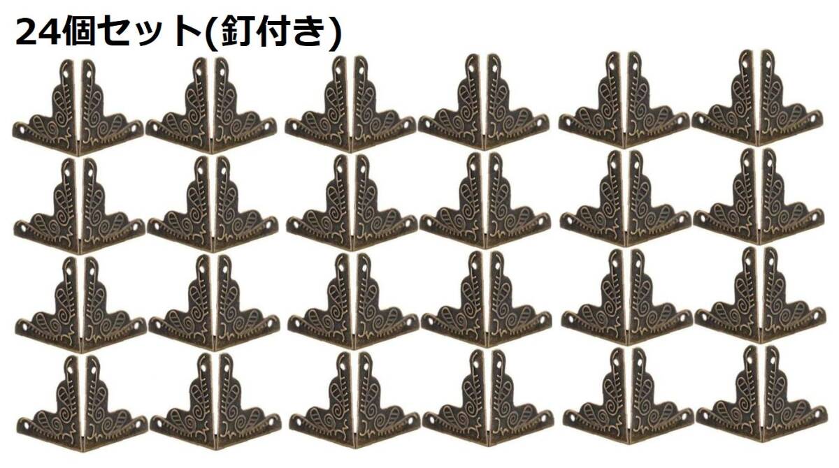 コーナー金具 三方 約25mm × 25mm × 35mm 木箱 ボックス用 プロテクタ 装飾品 アンティーク風 24点セット