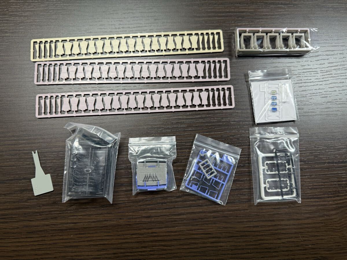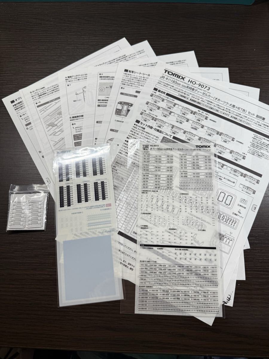 出品に際し、モーター、ライト、室内灯の点灯状態、ボディの傷等を検品し異常はありませんでした。パーツはヘッドマークと室内灯のジョイナーを取り付けており、その他の手すりパーツなどは未使用です。説明書は購入時から欠品していたため、当方で所有している同製品からコピーしたものを付属いたします。