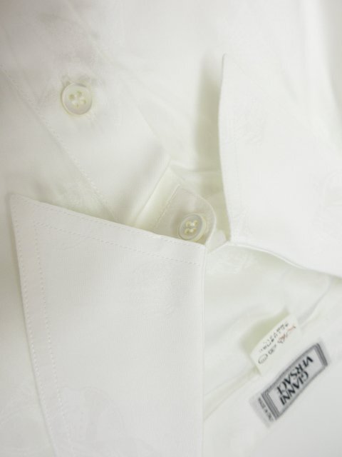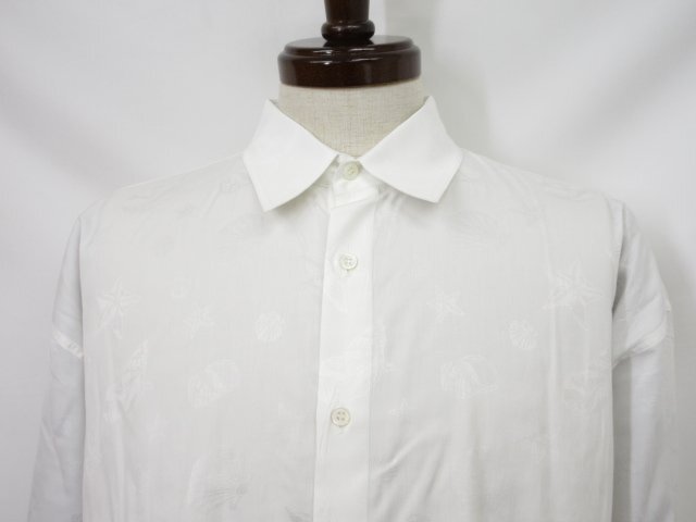 美品【Gianni Versace ジャンニ ヴェルサーチ】D-OS-921 貝殻の総刺繍柄 長袖シャツ (メンズ) size 52 ホワイト イタリア製 ◇38MK6240◇