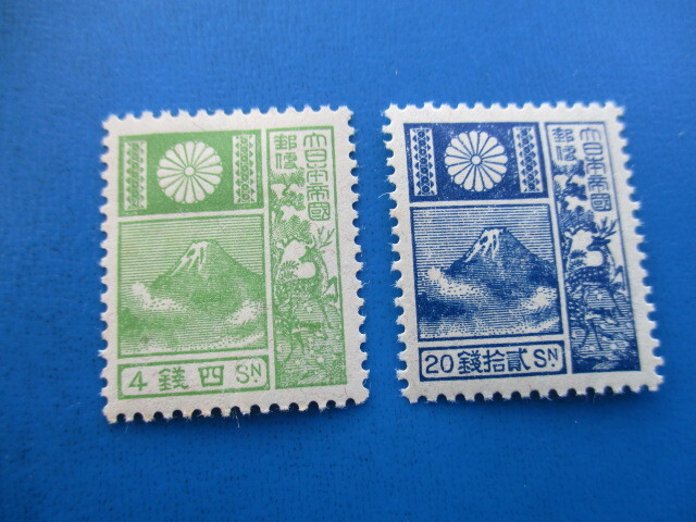 富士鹿切手 未使用2種です。裏糊あります。ヒンジ跡があります。