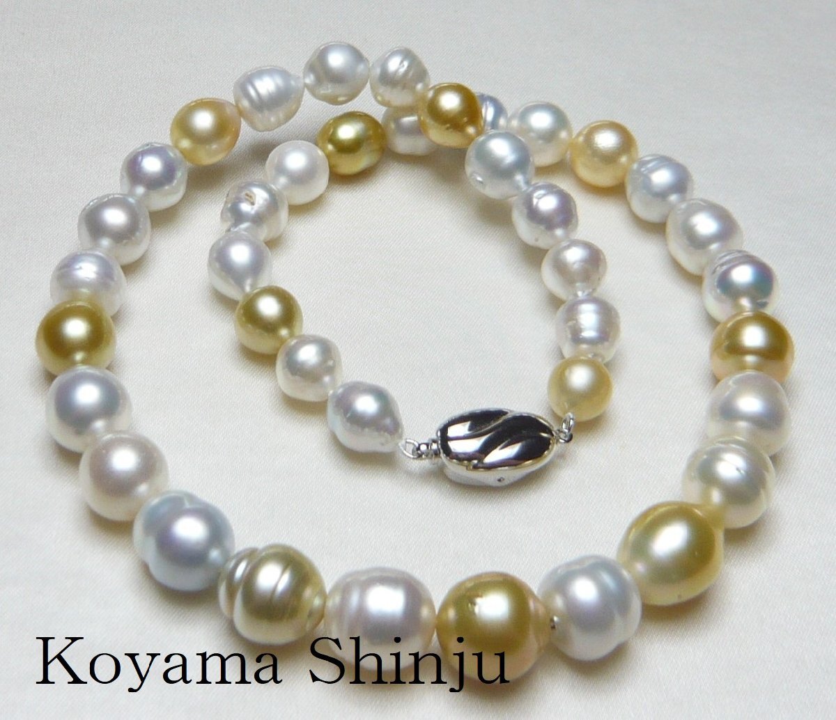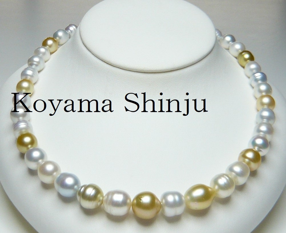 商 品 詳 細 | 即買特価!絶品カラー!白蝶真珠マルチネックレス! 即買特価!送料無料!絶品カラー!大珠白蝶真珠マルチパールネックレスです。 透明感のある天然カラーのホワイト、シルバー、ブルー、ブルーピンク、グレー、クリーム、ゴールド等のパールをバランスよく組み上げた可愛いマルチネックレスです♪ 画像では表現しきれない美しさです!めっちゃ綺麗ですよ! パールサイズも幅8.2ミリ-12.0ミリありますので、思ったよりボリュームがありますよ。 7枚目の画像は大きさが分かるように7.5-8.0ミリのあこや本真珠ネックレスを並べて撮影しました。 カラフルな仕上がりになりましたので、どんな服にも似合い、シーズンを通してお使い頂けますよ(^。^) クラスプは脱着容易なプッシュ式差し込みタイプです。 当方発行の保証書、お手入れクロス付きです。おまけもありますよ♪ 画像ですべてを表現できませんが、本真珠の証とも言えるキズ、エクボ、細胞痕、小突起、サークル、小穴等があります。 同じサイズ、色目、形の物はありません現品限りです。 | ||