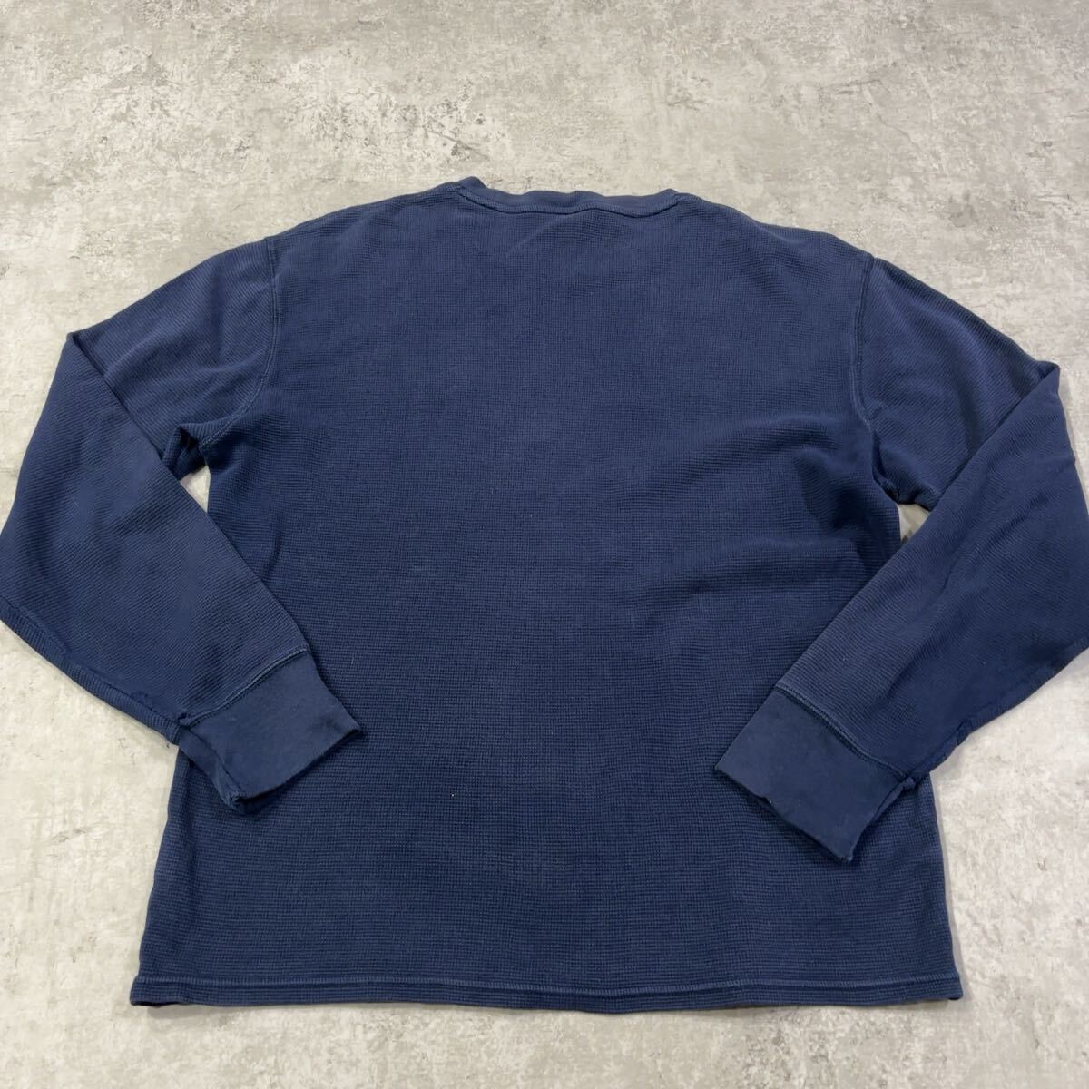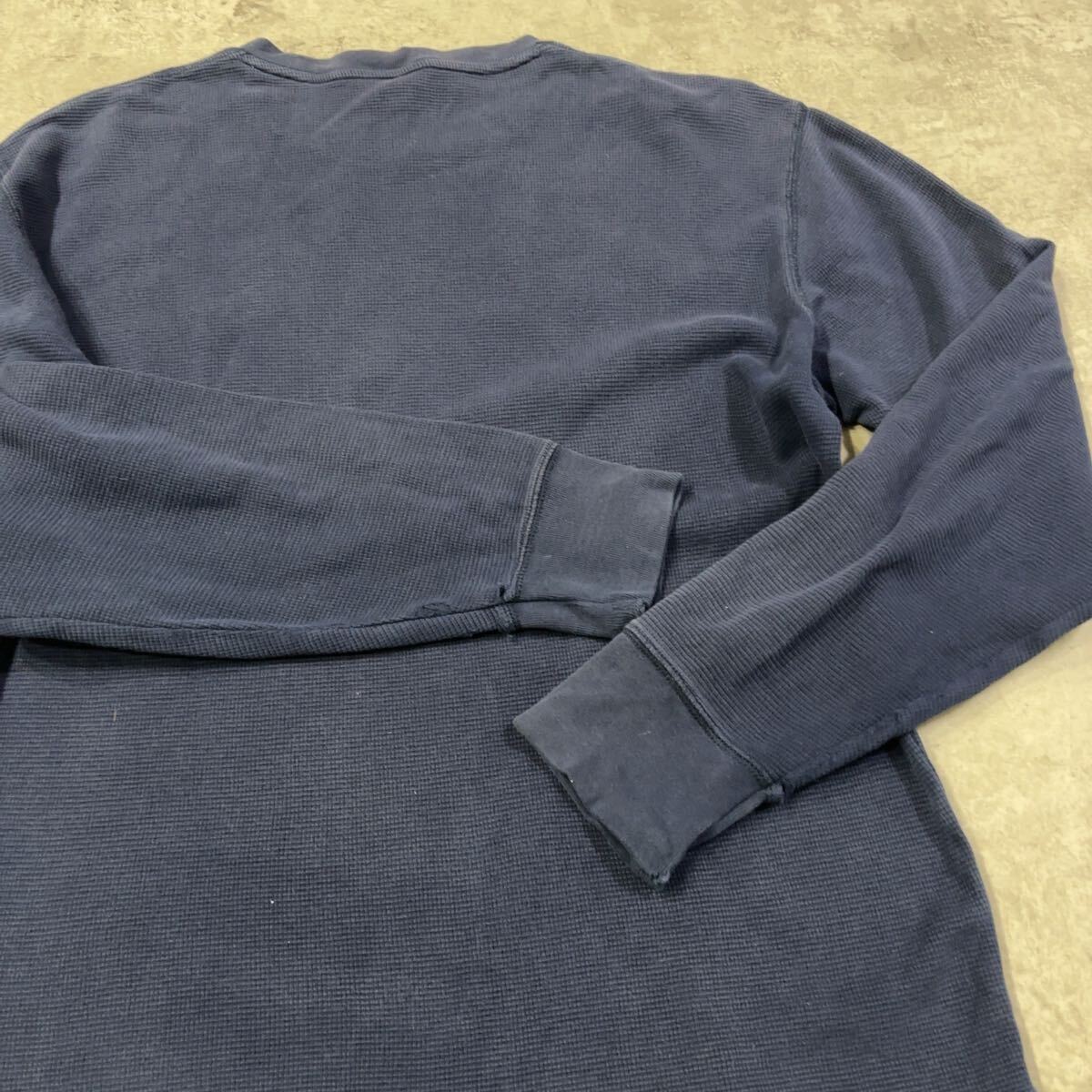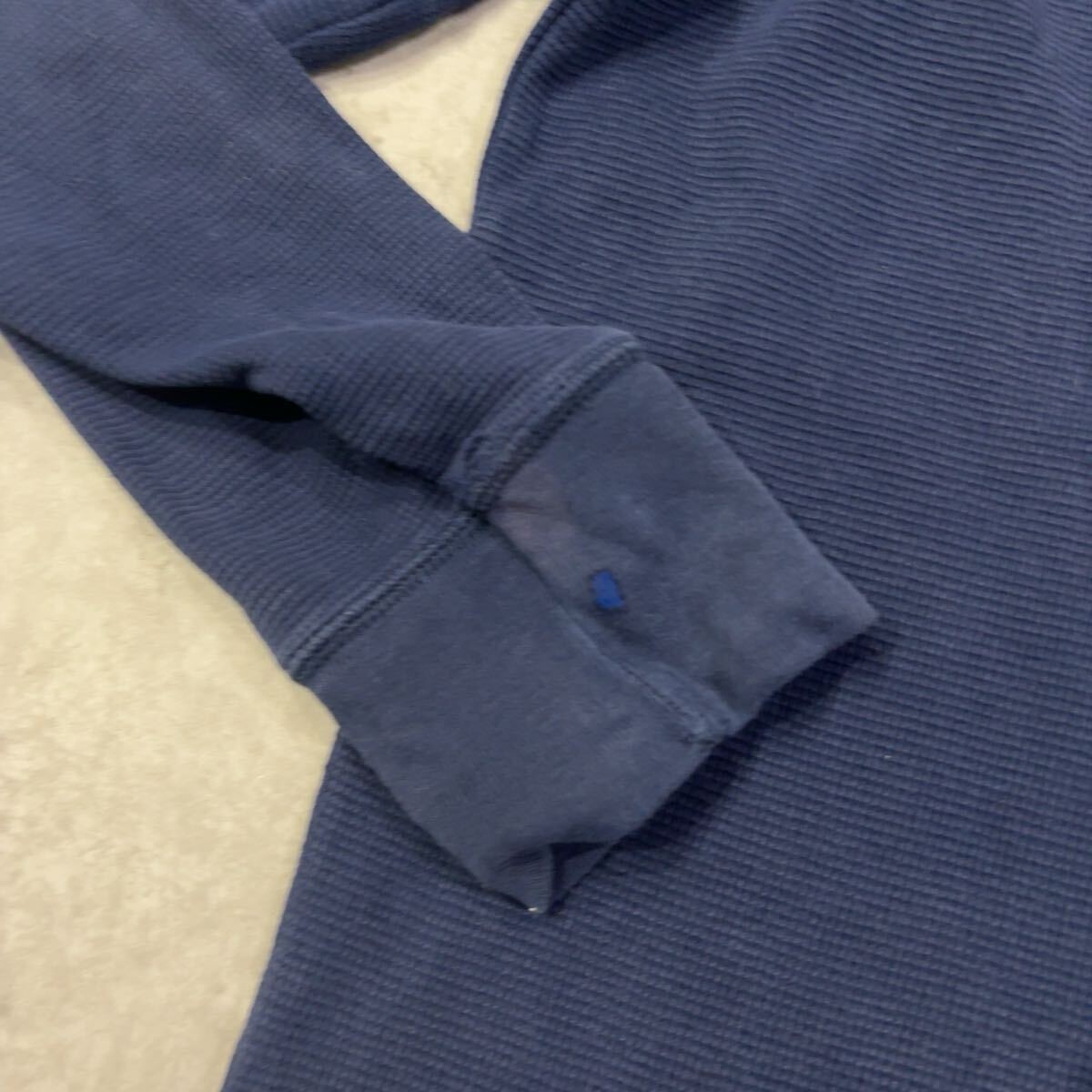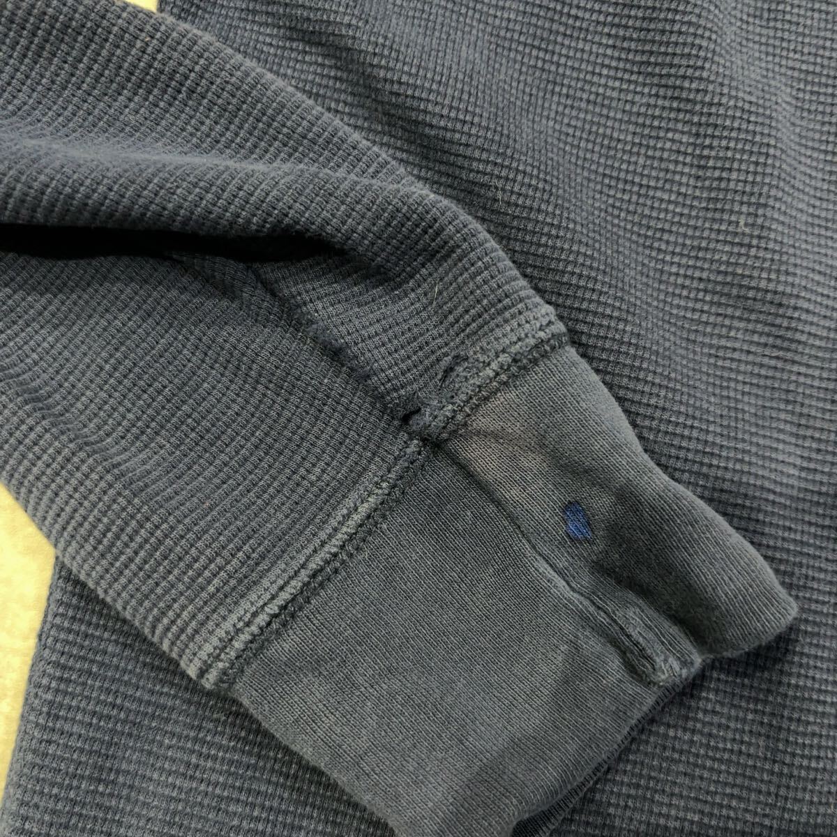 袖口にダメージあり。スレた穴と色抜けに色を足したような汚れシミ、内側にゴムがはいっていますが古着購入時からでしたが、おそらく自分でゴム入れられてる感じ。袖のやぶれやシミ?色抜け?以外は古着らしい色褪せでまだまだ着用可能。全体的に着用感のご理解がある方で宜しくお願いします!