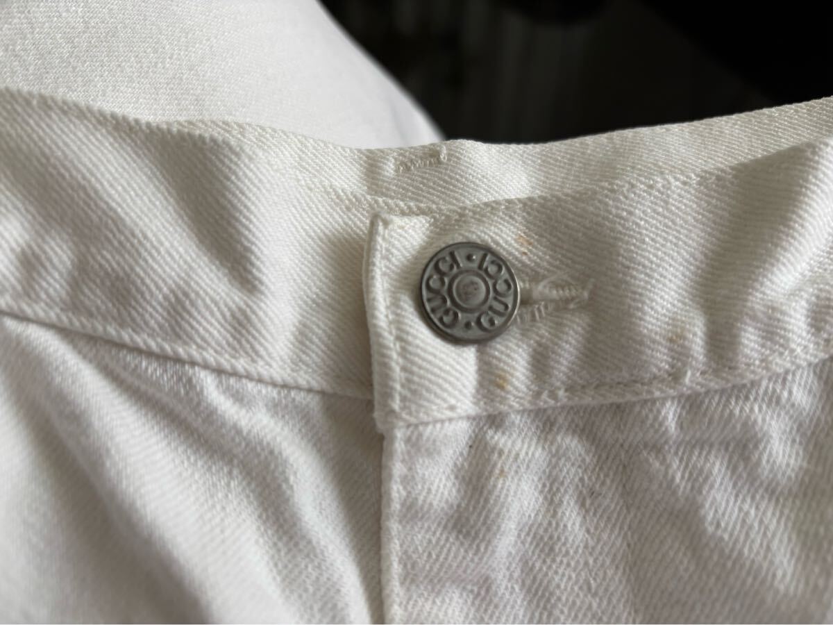 以前に百貨店内のグッチブティックで購入しましたGUCCI グッチ ホワイトデニム 型番131120. Z1476 短時間のす5〜6回のみ着用の極美品になります。