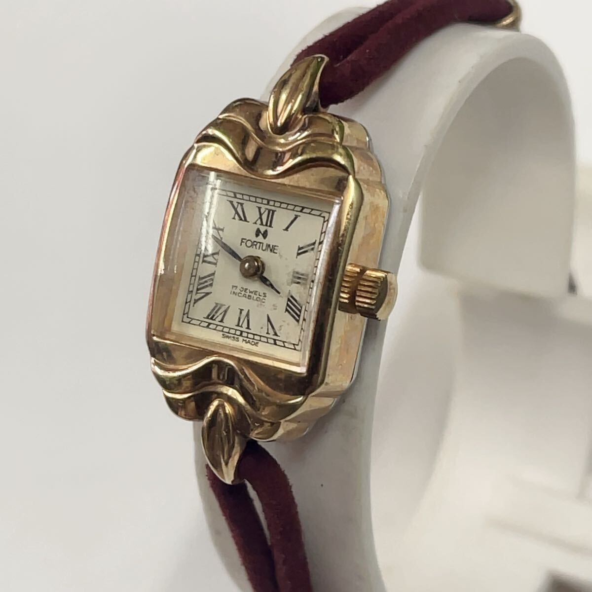 FORTUNE SWISS MADE 手巻き腕時計 17JEWELS ゴールド K18? フォーチュン アンティーク 稼働品