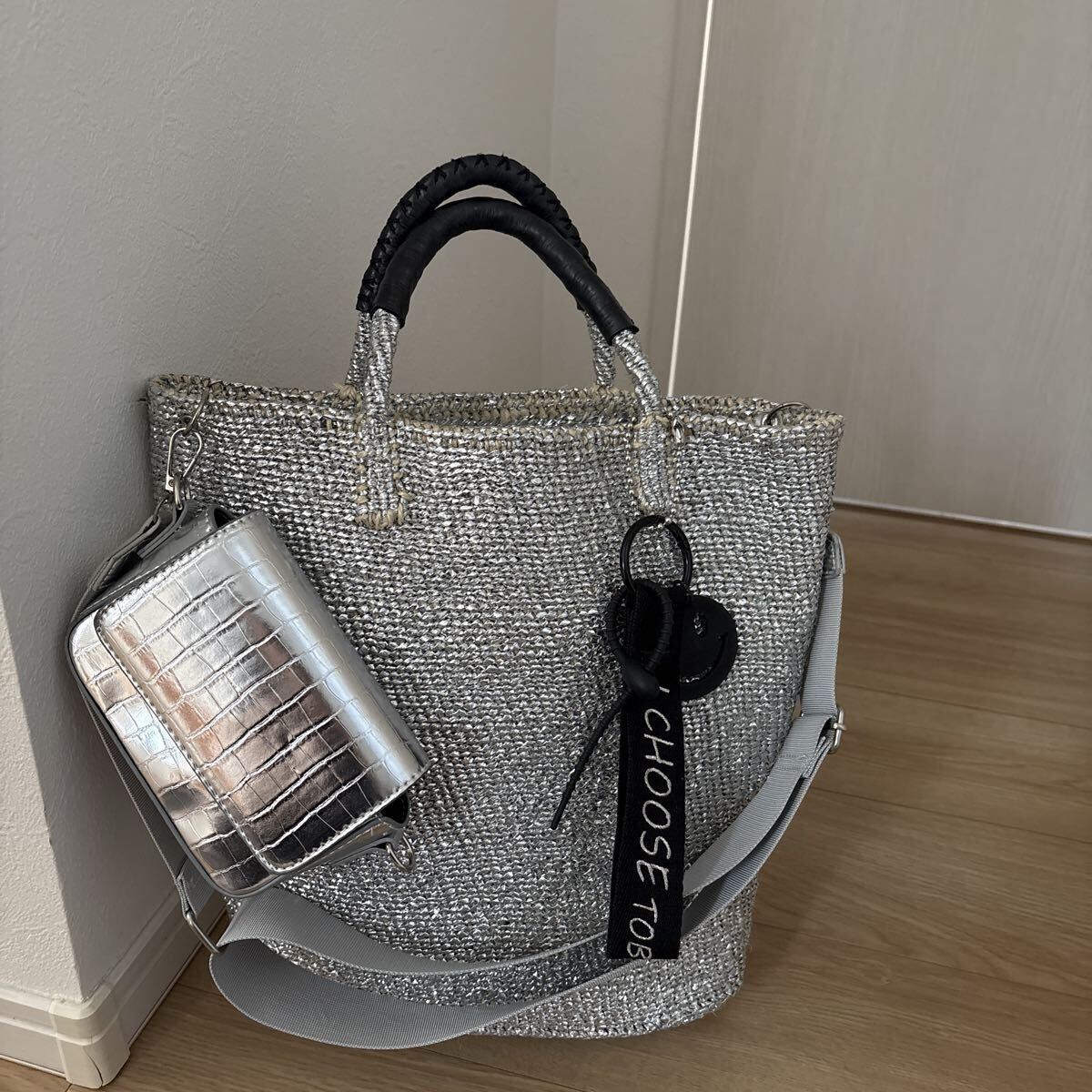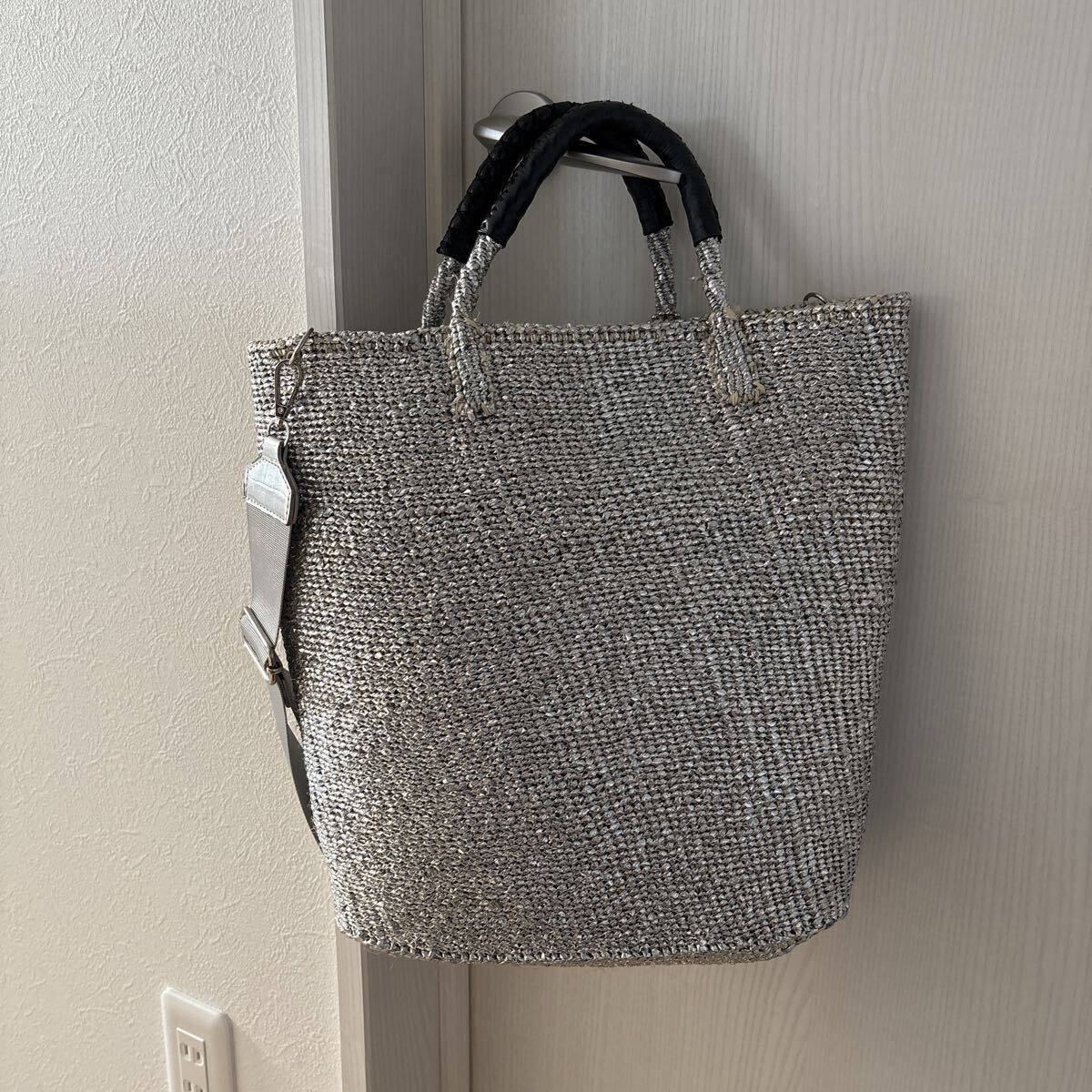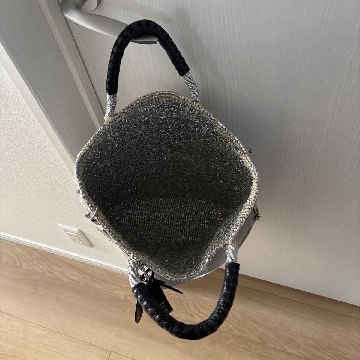 尚、シルバーカラーはサイザル素材だけのバッグよりしっかりめになり馴染み感が変わり水にも比較的強くなっています。