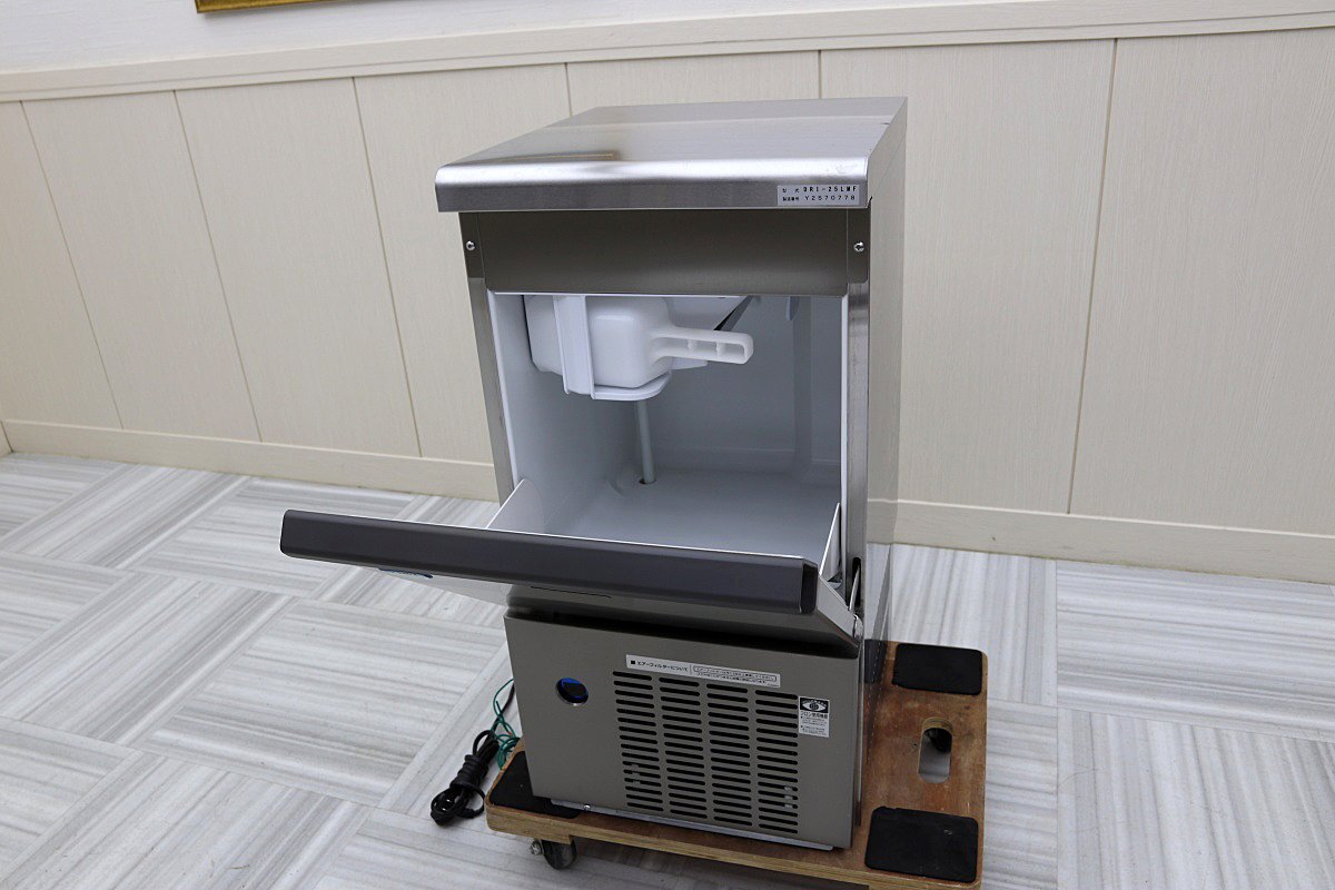 ★ご覧いただき誠にありがとうございます★ ■メーカー:ダイワ(大和冷機) ■型式:DRI-25LMF ■年式:2022年 ■電圧:100V (50/60Hz) ■サイズ:約:横幅-40×奥行-45×高さ-77cm ■清掃・動作確認OK!高年式=超美品です!ご検討宜しくお願い致します! ●商品詳細はメーカーサイト→こちらからをご確認ください。 特徴 ●ジェット噴流で水分中の不純物や空気・カルキ等を除去します。 ●インバーター制御凝縮ファンとDCポンプを採用した、省エネタイプです。 ●扉ガスケットに防カビ剤・扉取手に抗菌剤を使用しており、本体内側にスコップホルダーを設置していますので衛生的です。 仕様 ●外寸法:395×450×770mm ●製氷能力(50/60Hz)kg/日:26/28 ●貯氷量:14.0kg ●材質:外装/ステンレス鋼板(クリア塗装)、内装/合成樹脂、背面/亜鉛引鋼板 ●漏電ブレーカー付き ●電源:AC100V 50/60Hz ●電源コード長:2.8m ●消費電力(50/60Hz):155/165W ●重量:33kg ●付属品:氷スコップ、エルボ、排水ホース ※製氷能力は室温20℃・水温15℃において。 ●当方にて洗浄しておりますが、取り切れないキズ、スレ、ヘコミ等ありますので、中古品の為、ご理解の上お願いいたします。また、業務用洗剤使用の為、取っ手が白くなっている事がございます。 ●あとはすべて写真にてご審査願います。写真には写りきらない、よごれやダメージ、詳細部分の、記載ミスなどがもしあっても、その旨のクレームはご勘弁下さい。上記内容をご理解頂き、ノークレーム・ノーリターンでお願いいたしいます。 |