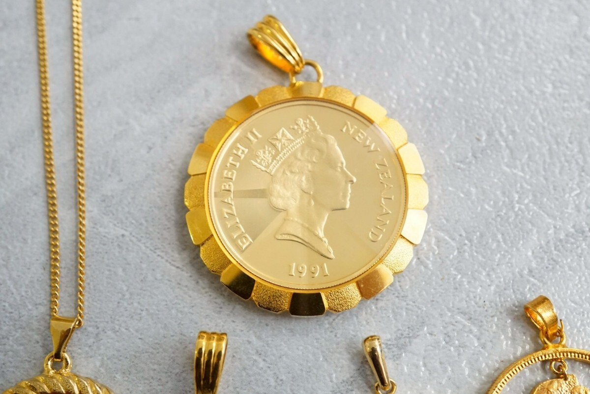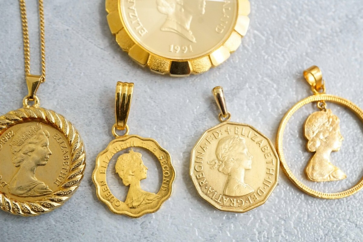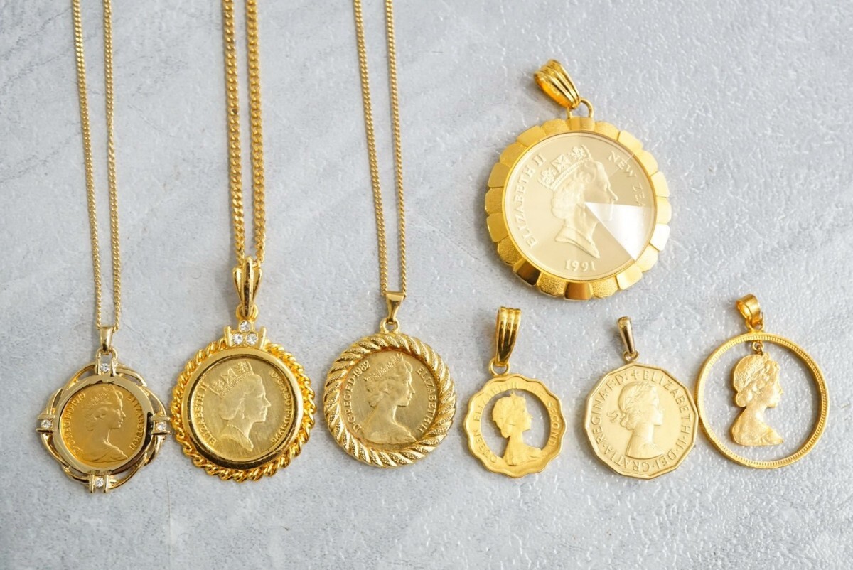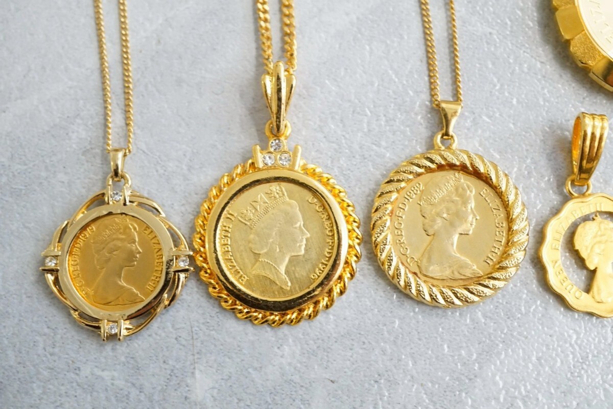 B464 コイントップ エリザベスなど レプリカ ネックレス ペンダント 7点 ヴィンテージ アクセサリー 大量 まとめて おまとめ まとめ売り