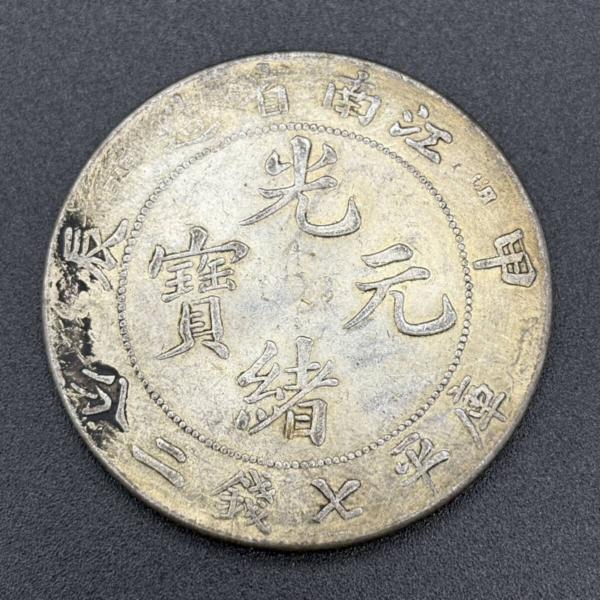 TY2731■【銀貨 約26.0g/約26.5g】中国 古銭 旧硬貨 光緒元寶 2枚 まとめ 廣東省造 広東 江南省造 庫平七銭二分 アンティーク コレクション | |||