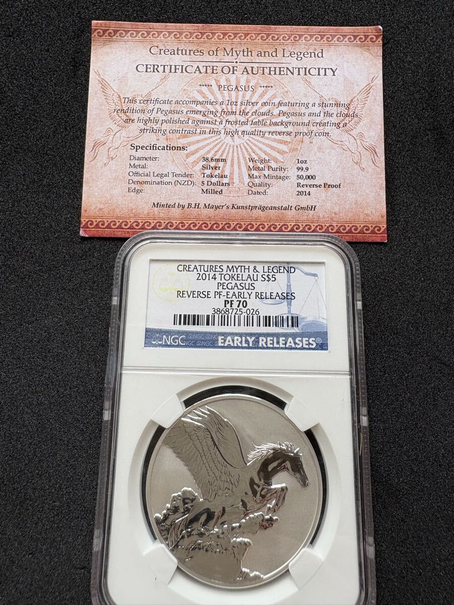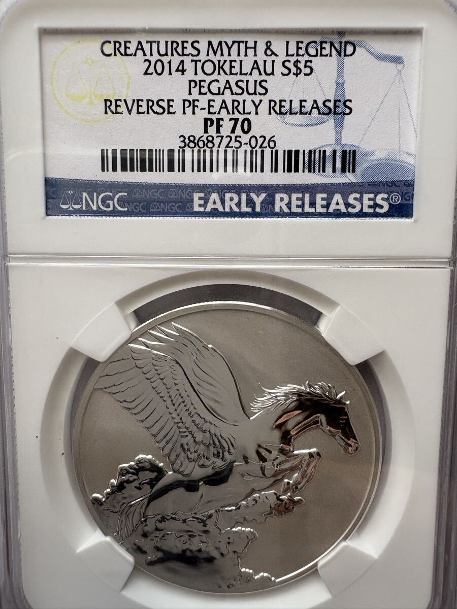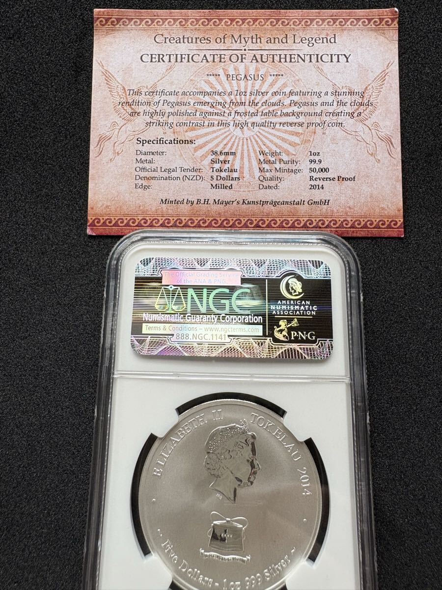 Top Pop 最高鑑定 ヤフオク初登場 2014年 ケトラウ 銀貨 $5 1オンス ペガサス NGC PF70 リバースプルーフ アーリーリリース