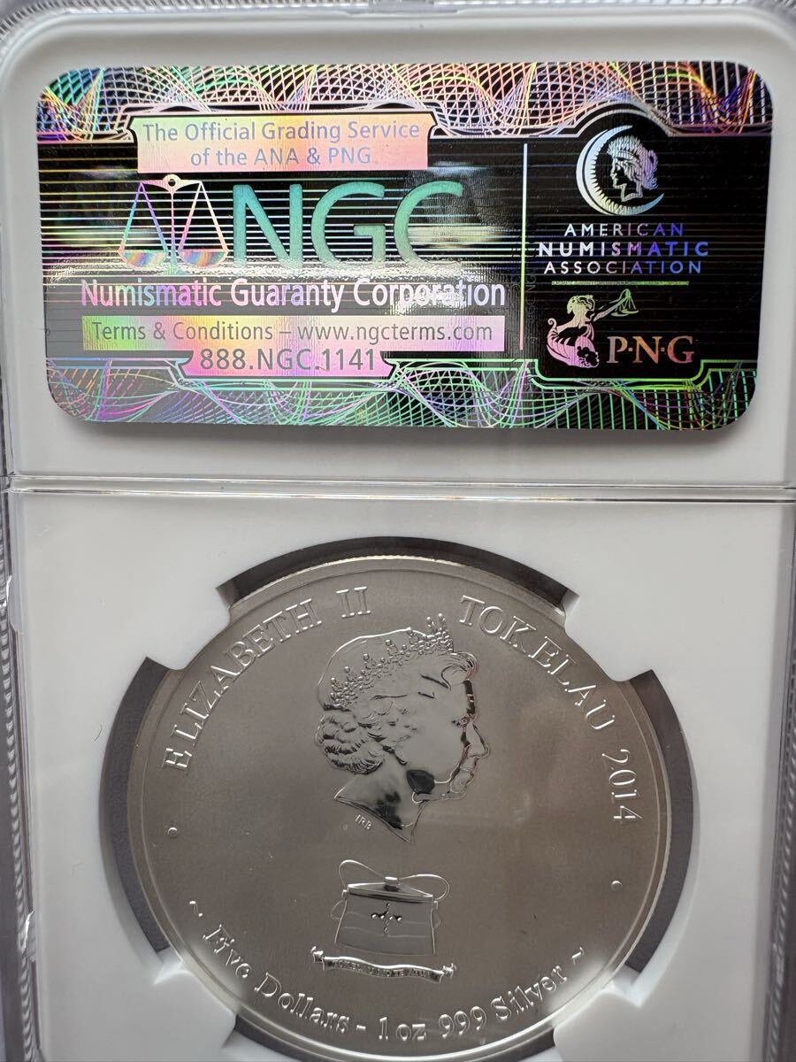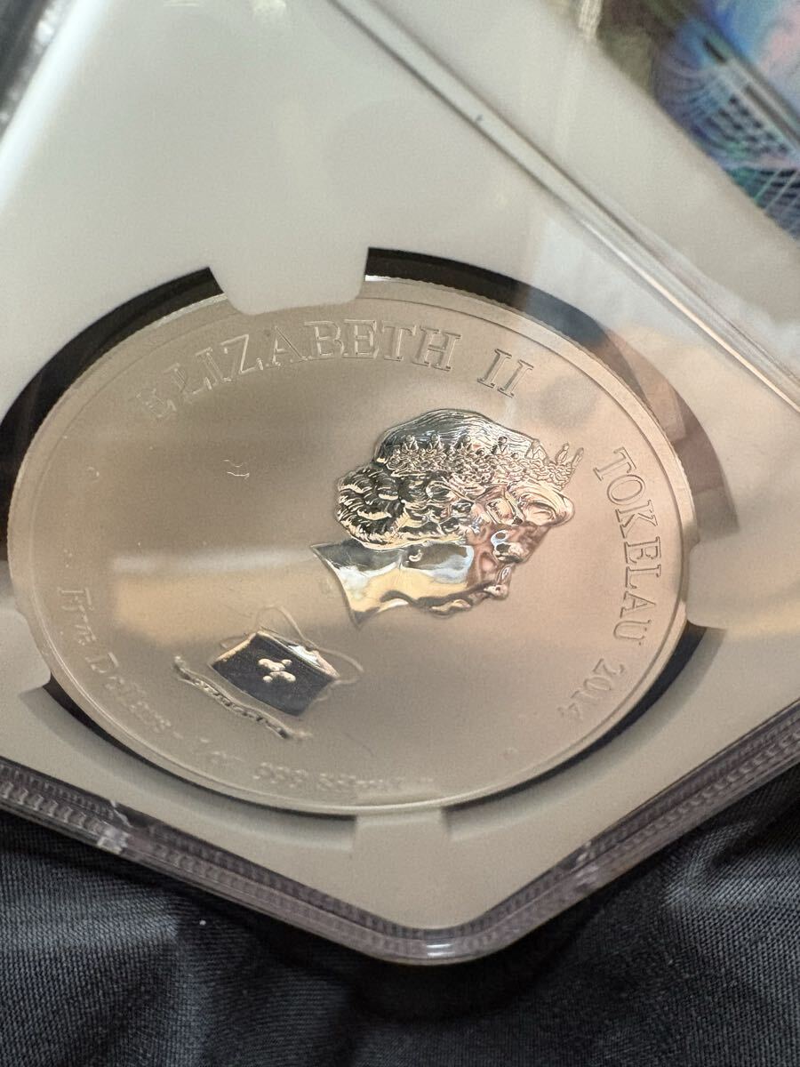 非常に希少な2014年トケラウ発行の5ドル銀貨です。