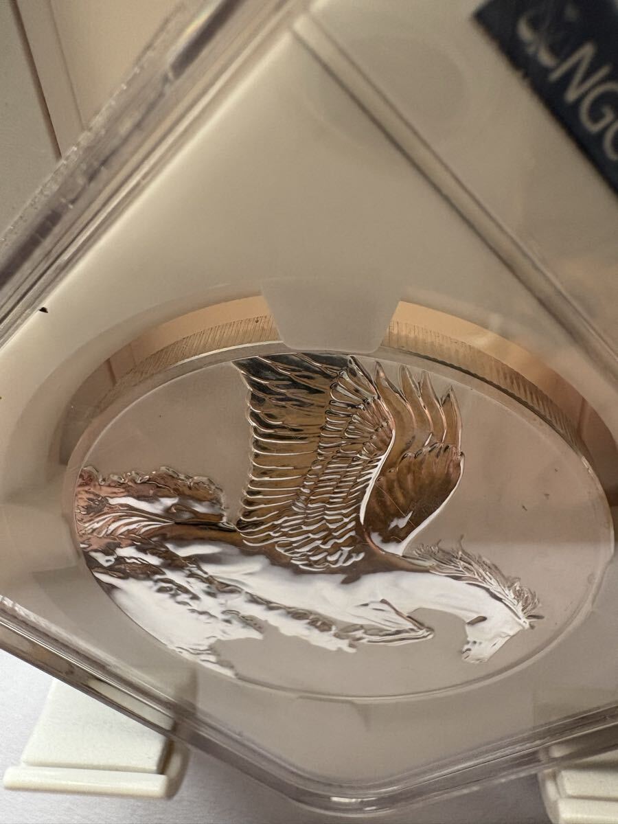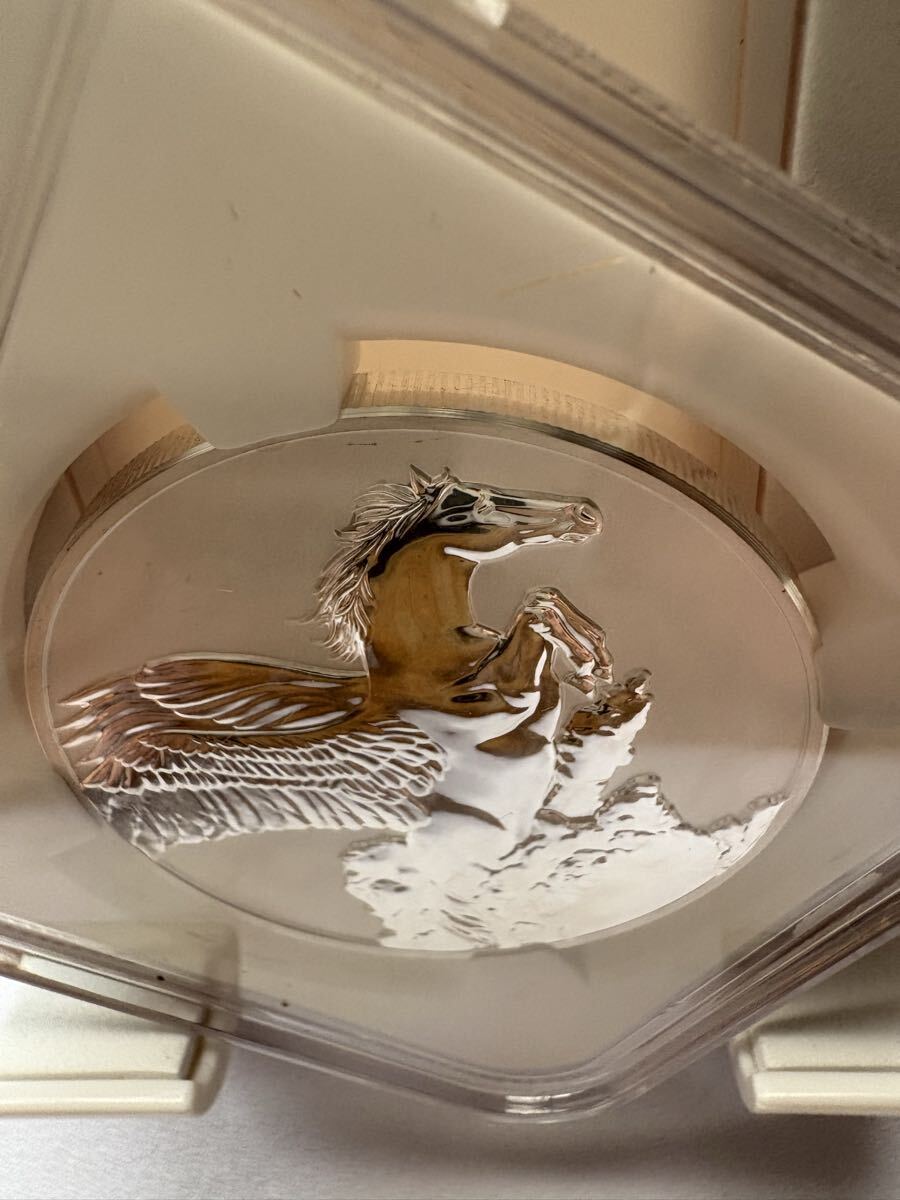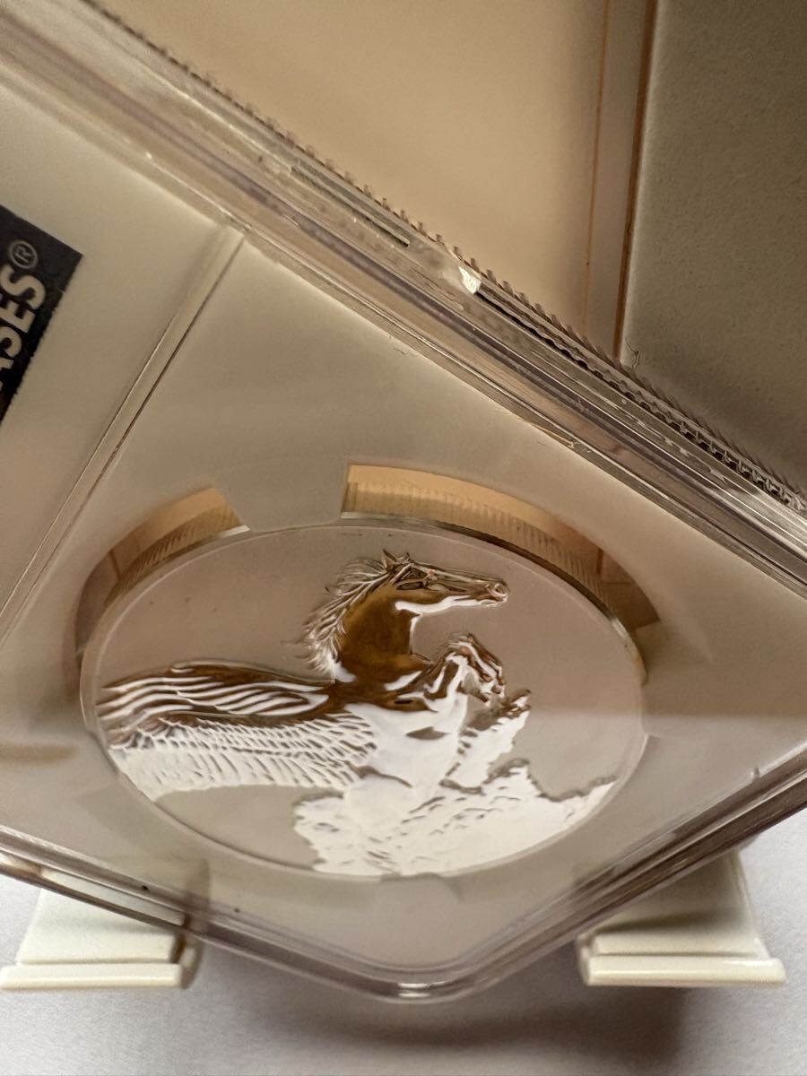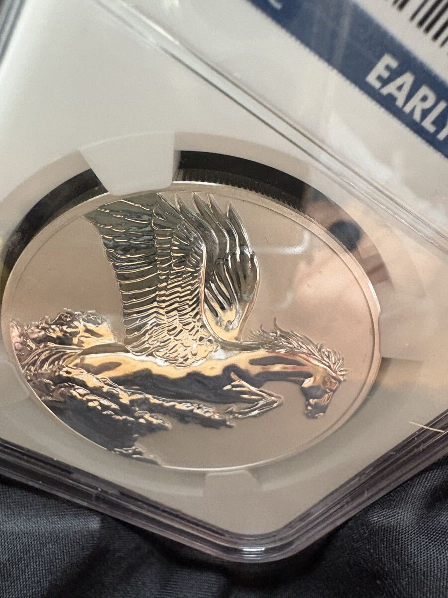 天空を駆けるペガサスの力強いデザインとTop Popという希少性 同グレード43枚 極めて価値の高いコインです